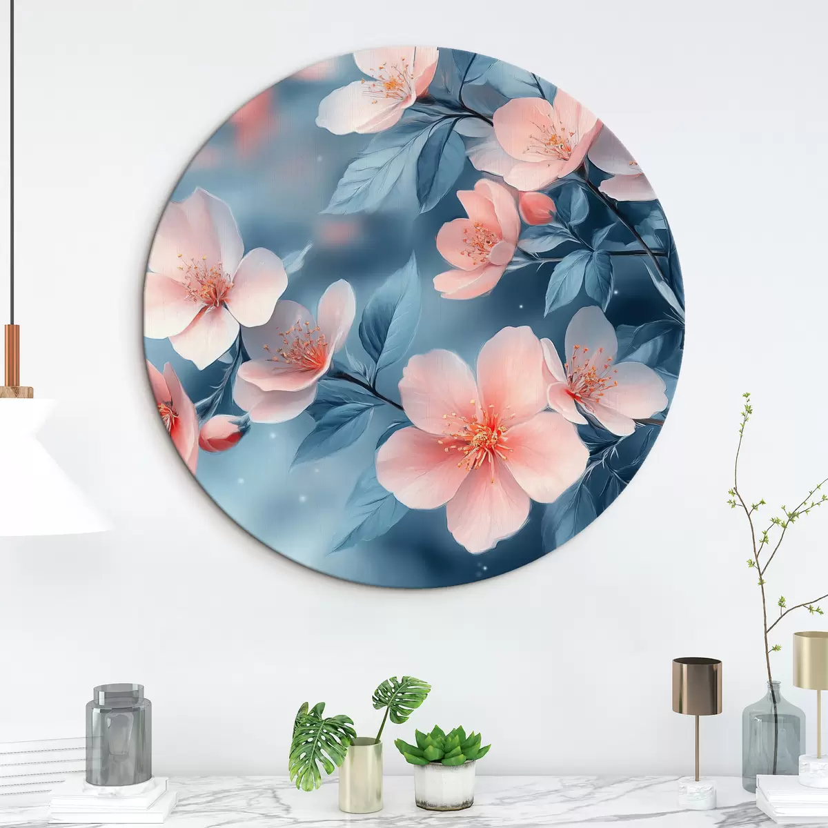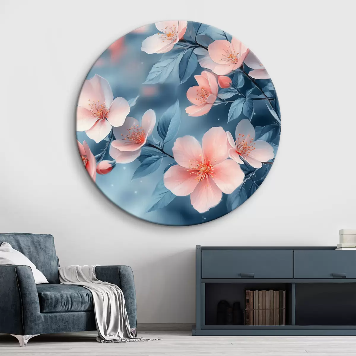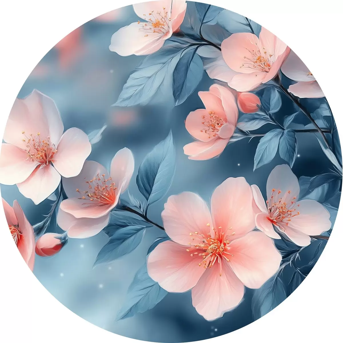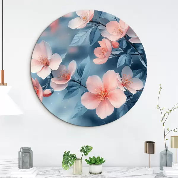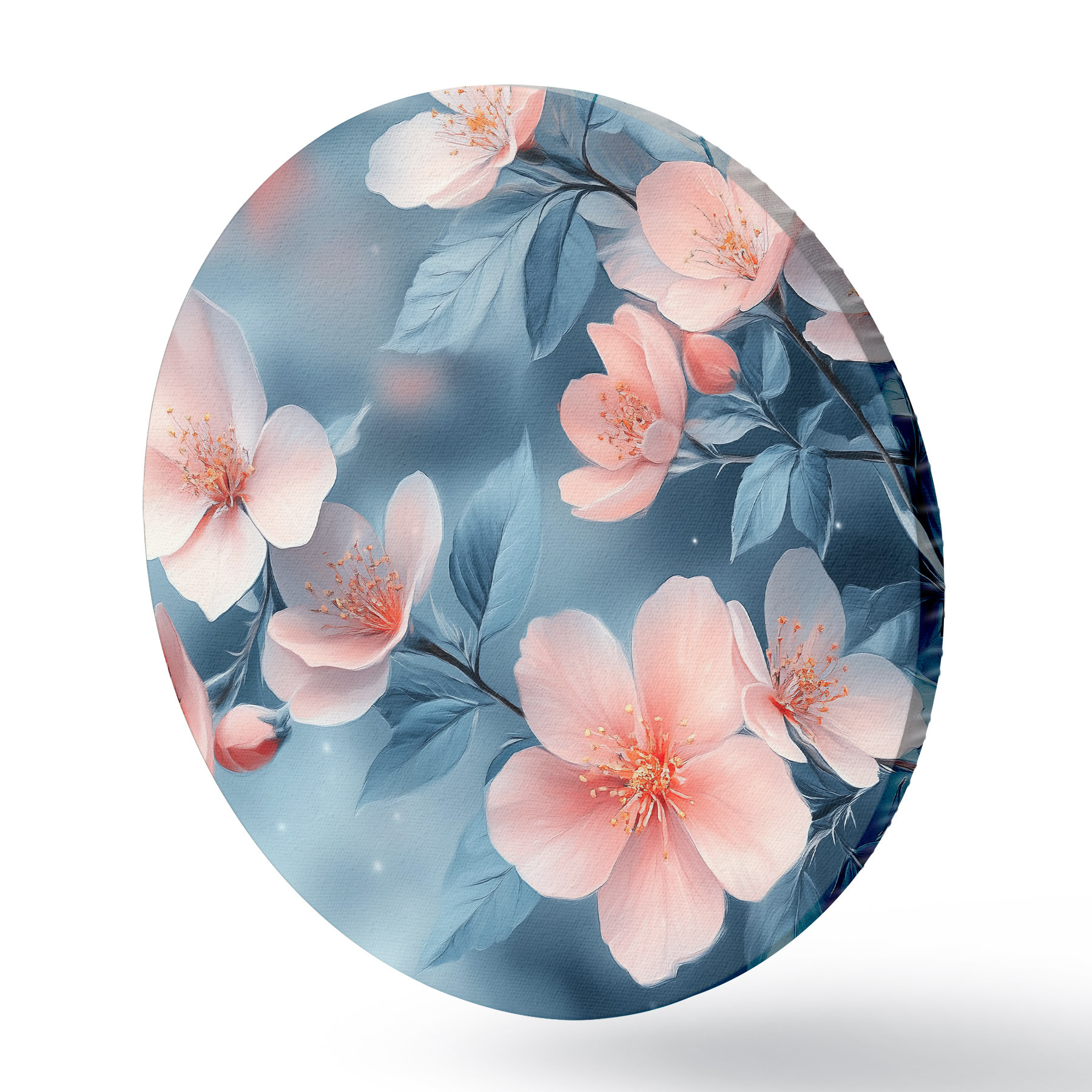 Cuadros redondos Flores rosas sobre fondo azul r42846