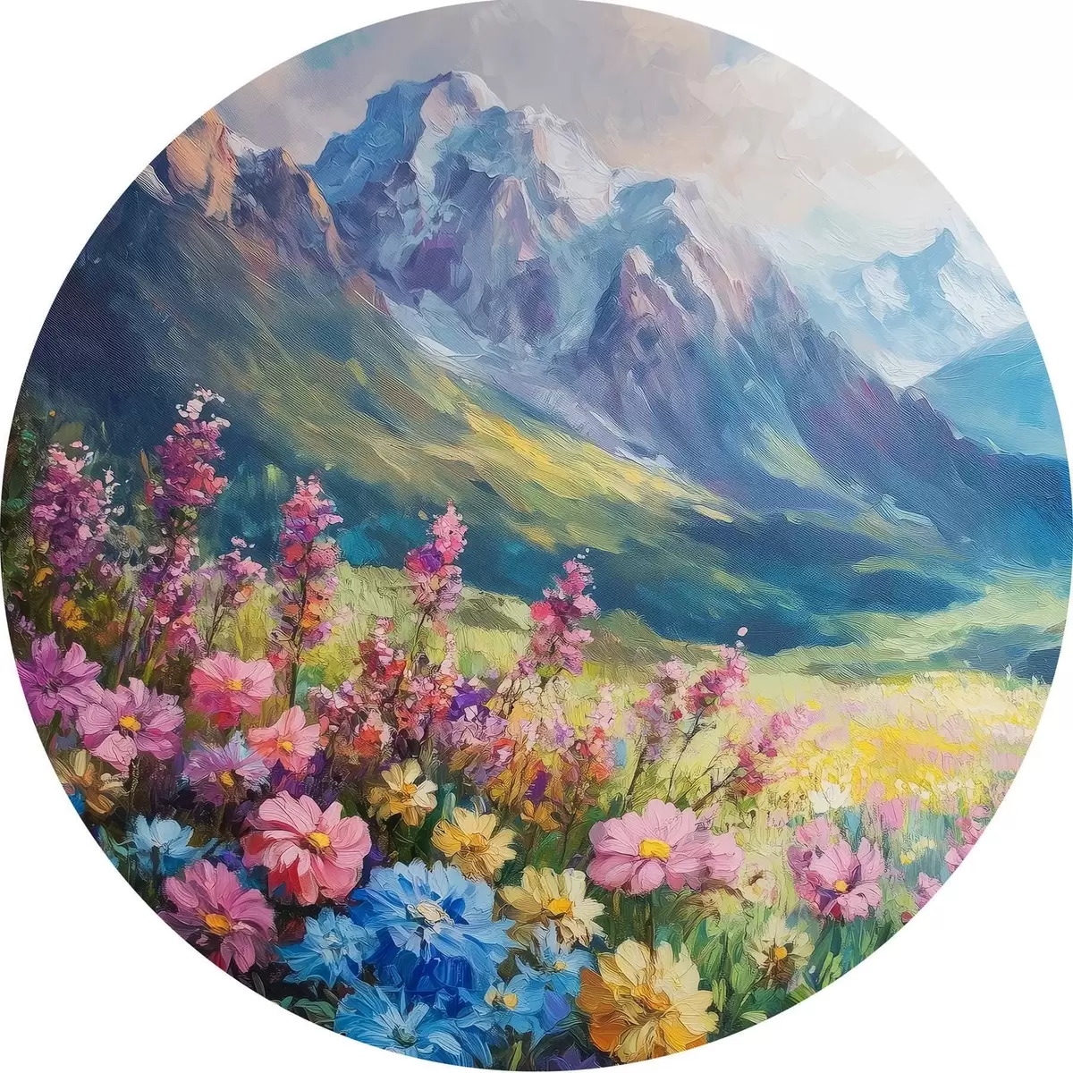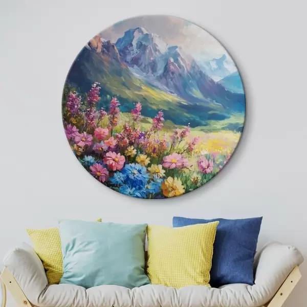Cuadros redondos Pradera floreciente en las montañas r42855