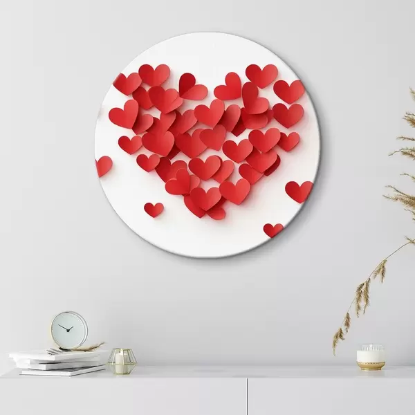 Cuadros redondos Imitación, papel volumétrico corazones rojos r42870