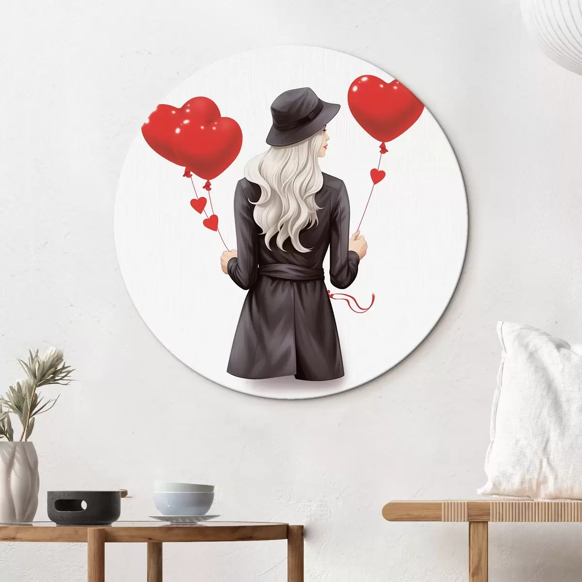 Cuadros redondos Rubia con globos r42875