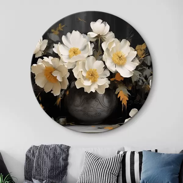 Cuadros redondos Peonías blancas en un jarrón r42884