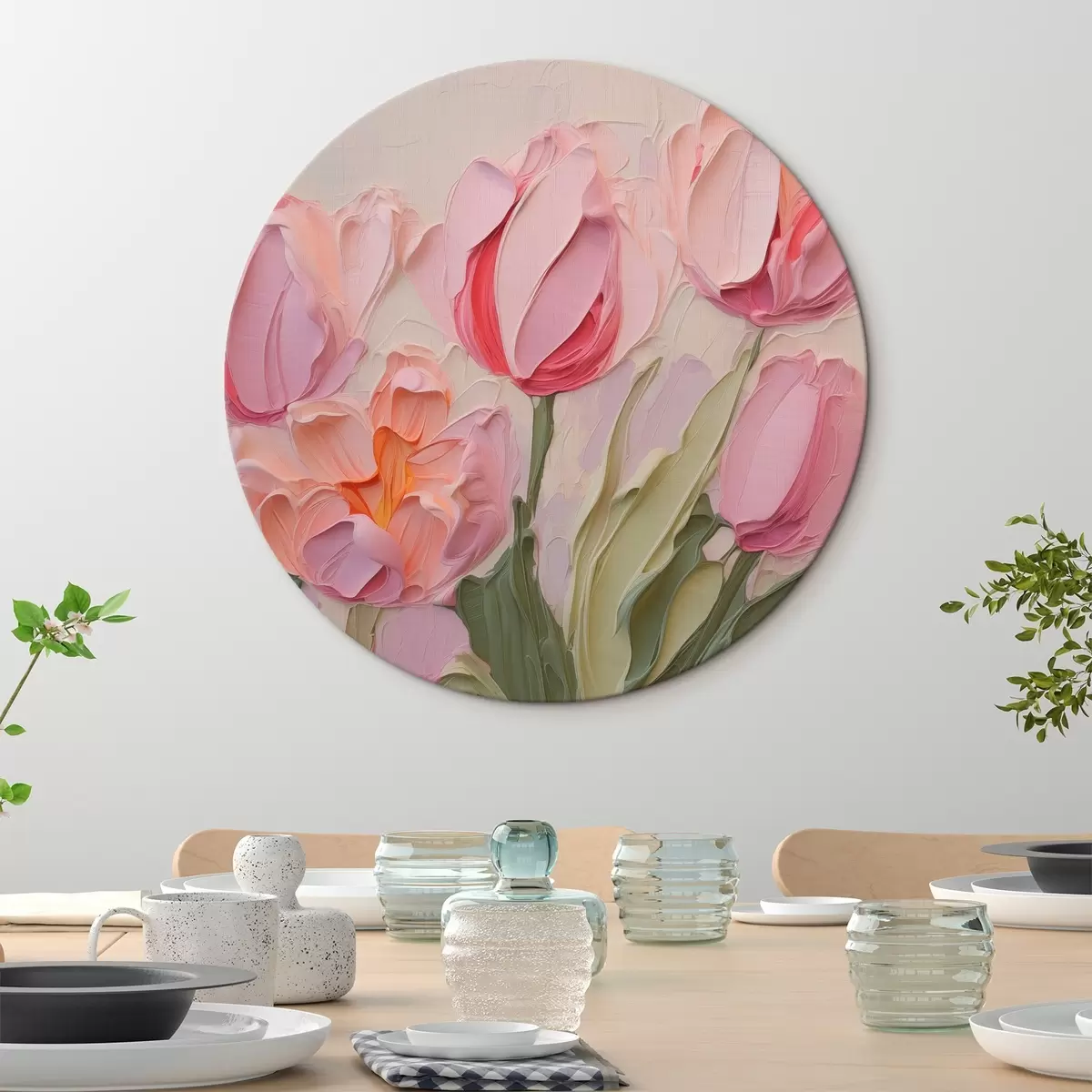 Cuadros redondos Tulipanes imitación de trazos de pintura r42908