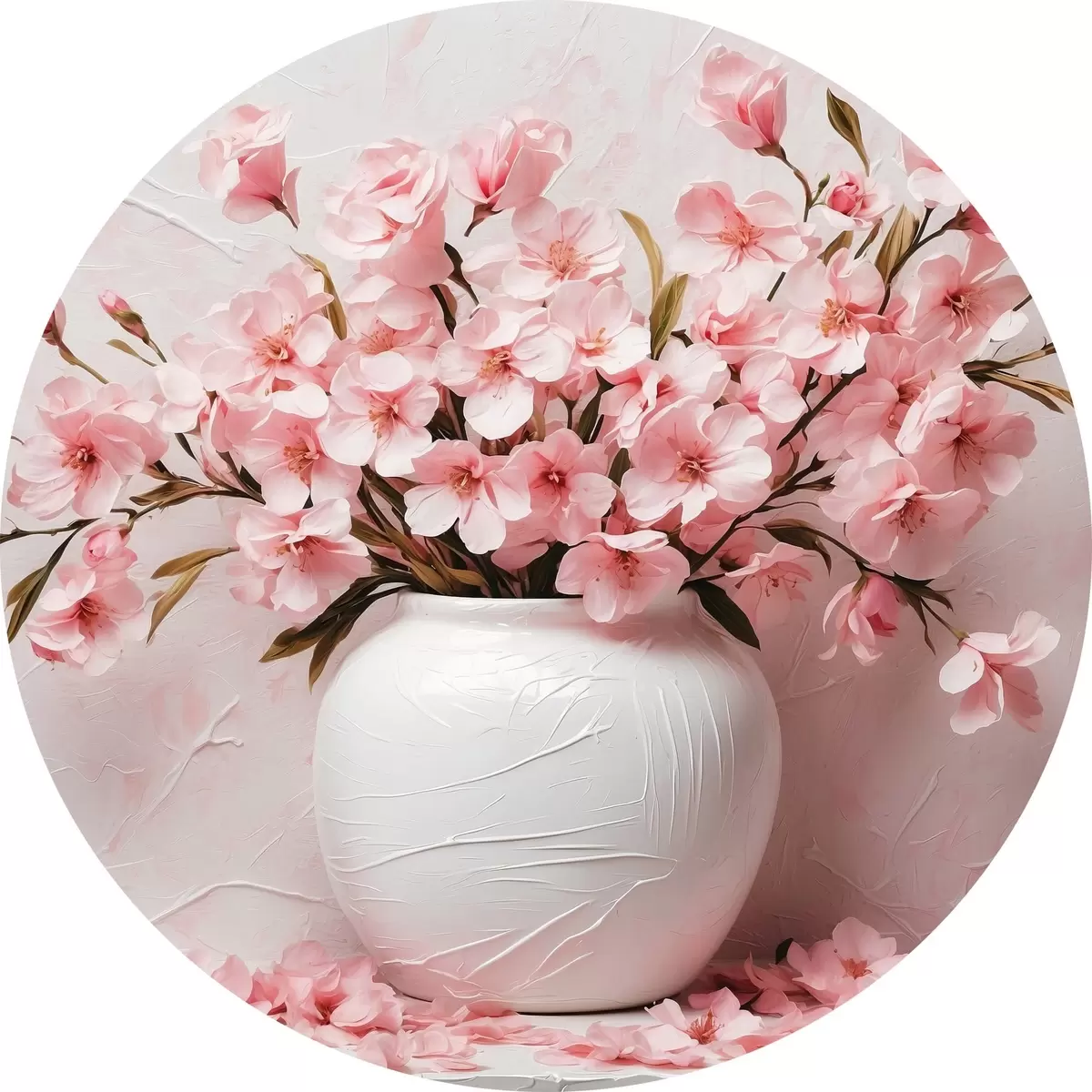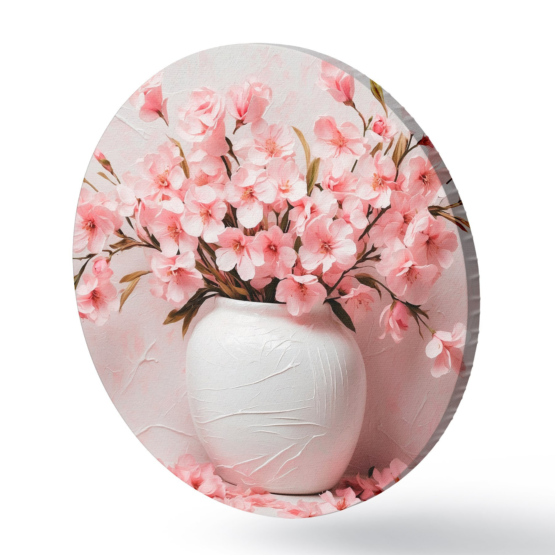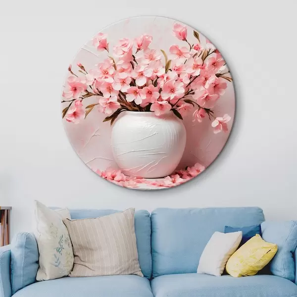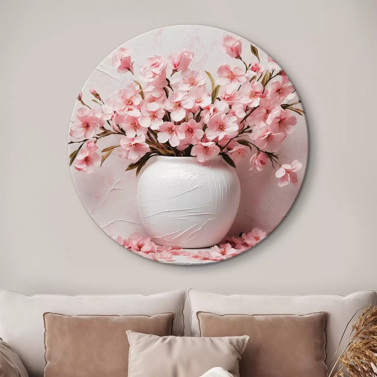 Cuadros redondos Flor rosa en jarrón blanco r42915