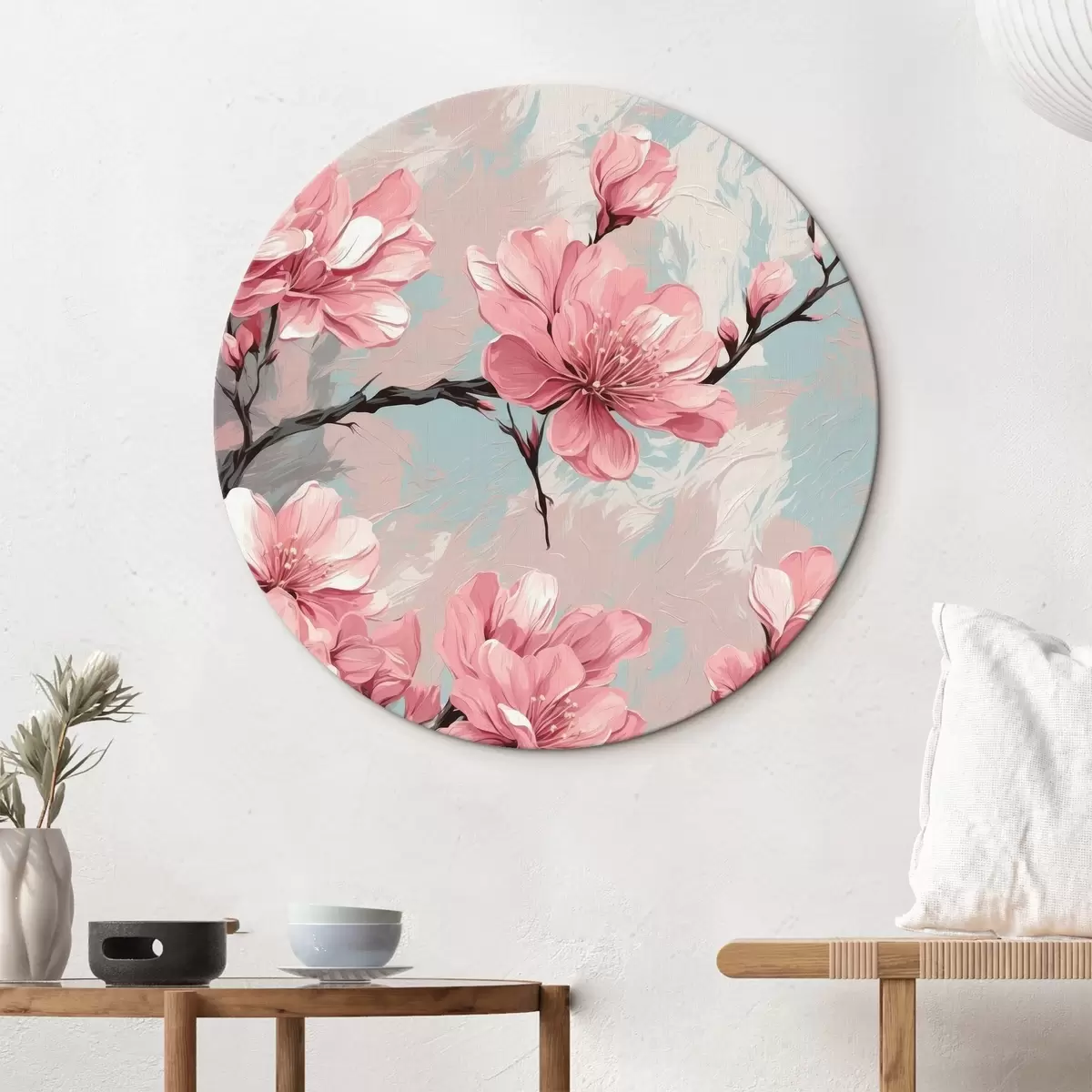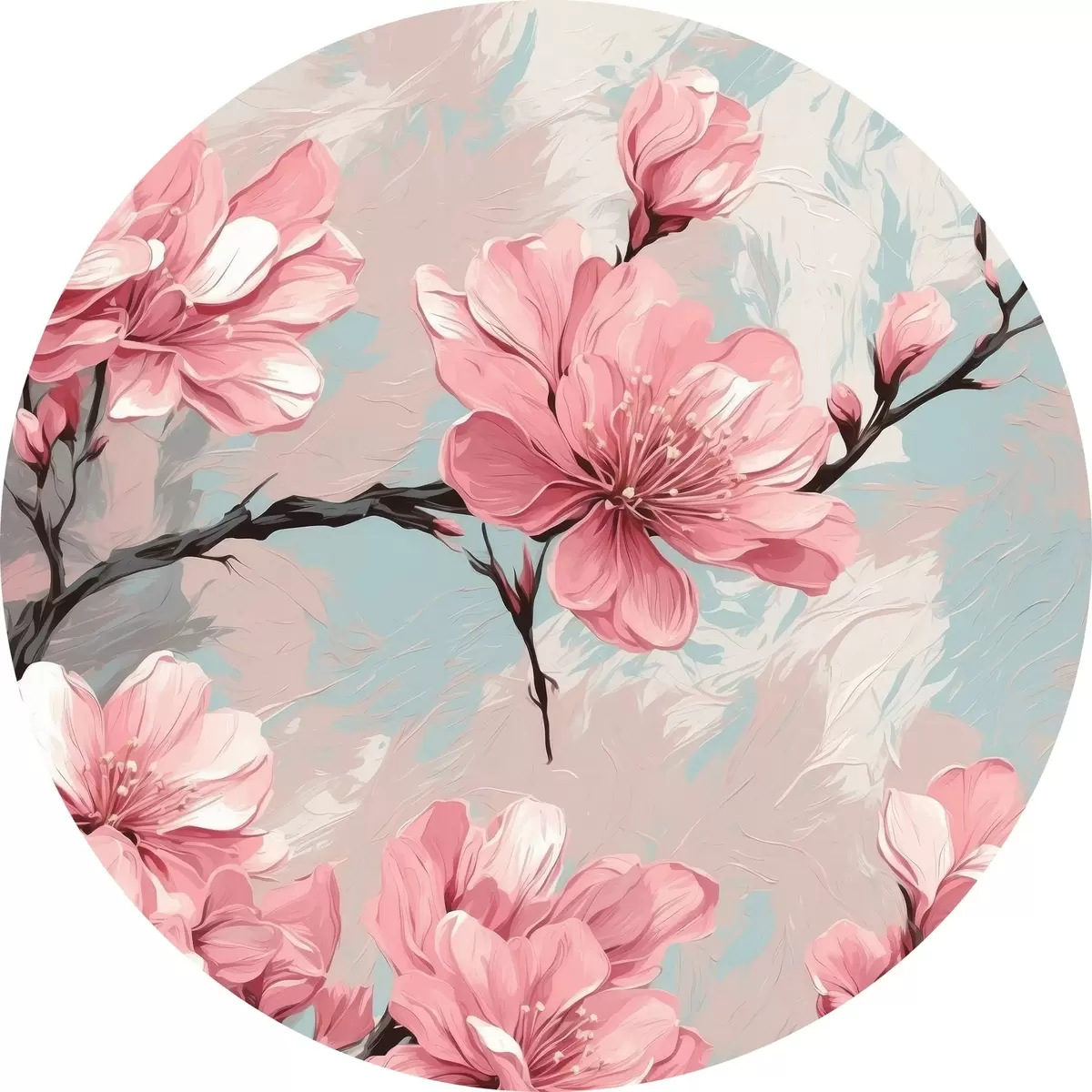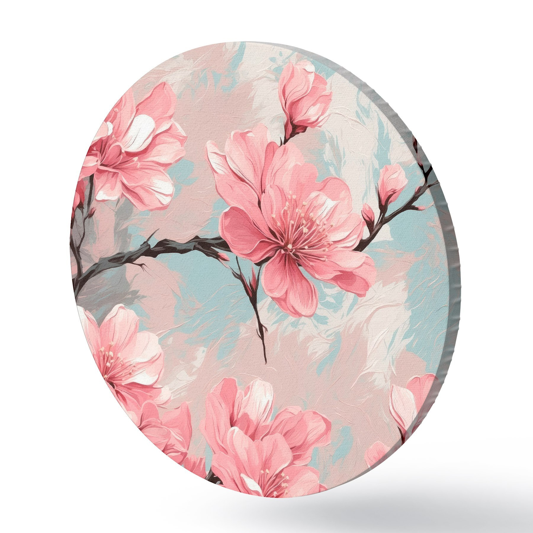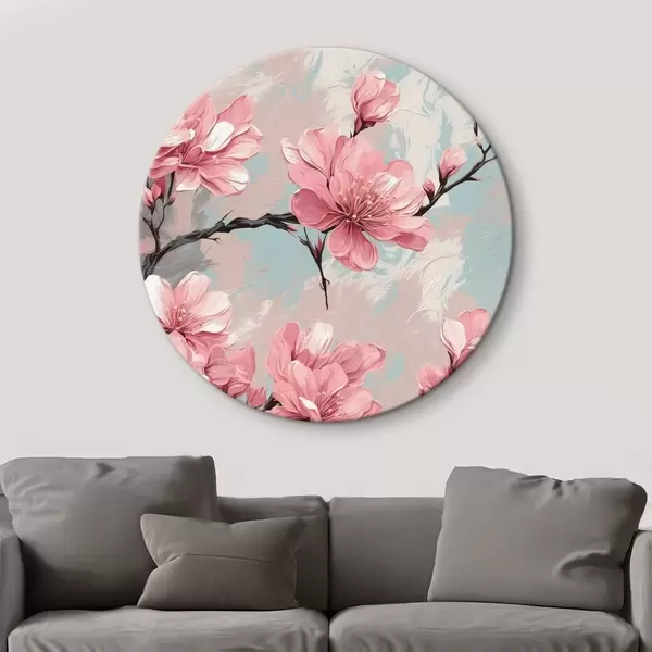 Cuadros redondos Florr rosa y rtemr en pintura acrílica rtyle r42918