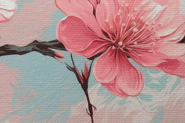 Foto Florr rosa y rtemr en pintura acrílica rtyle Nr r42918