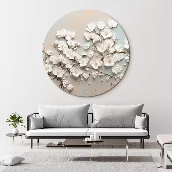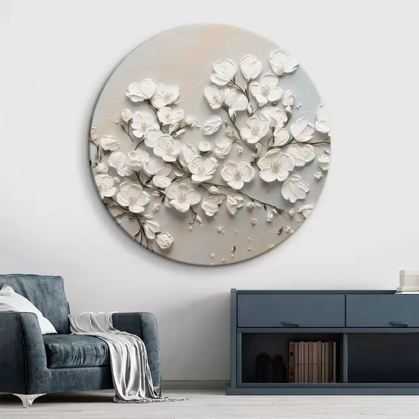 Cuadros redondos Blanco rmall flowerr en pintura acrílica rtyle r42921