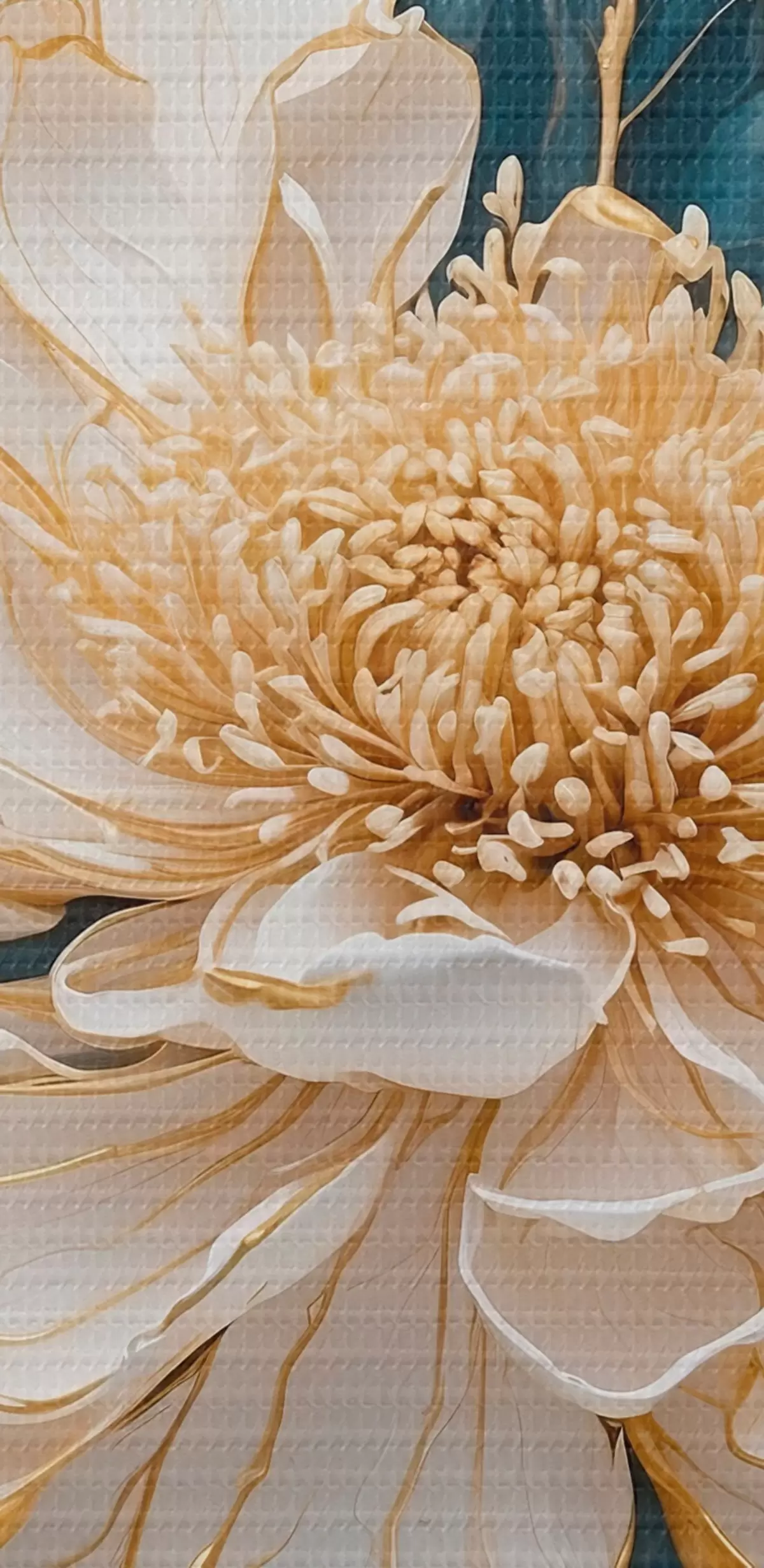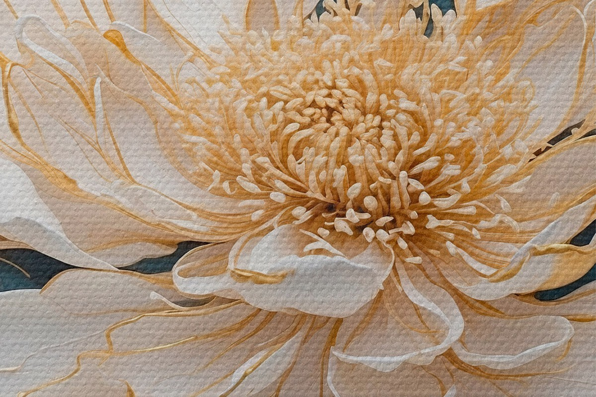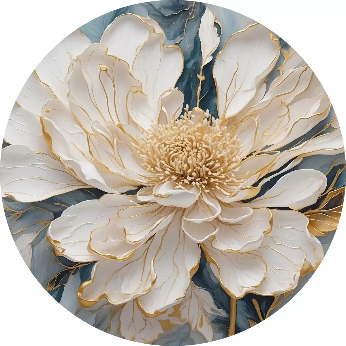 Cuadros redondos Flor blanca con contorno dorado sobre fondo blanco azulado r42923