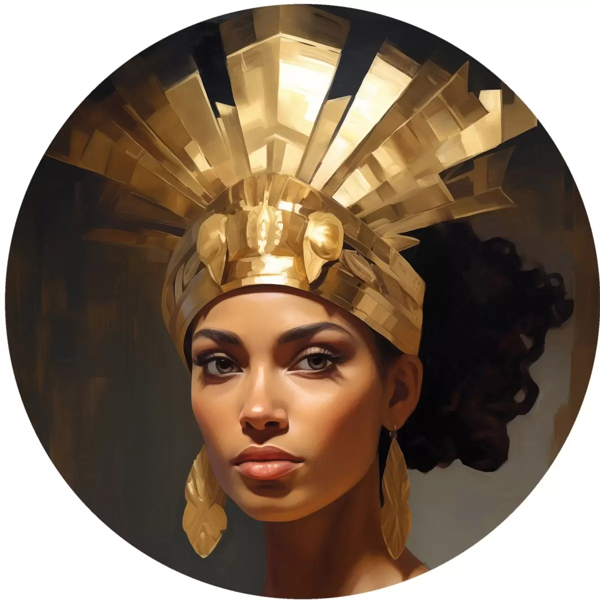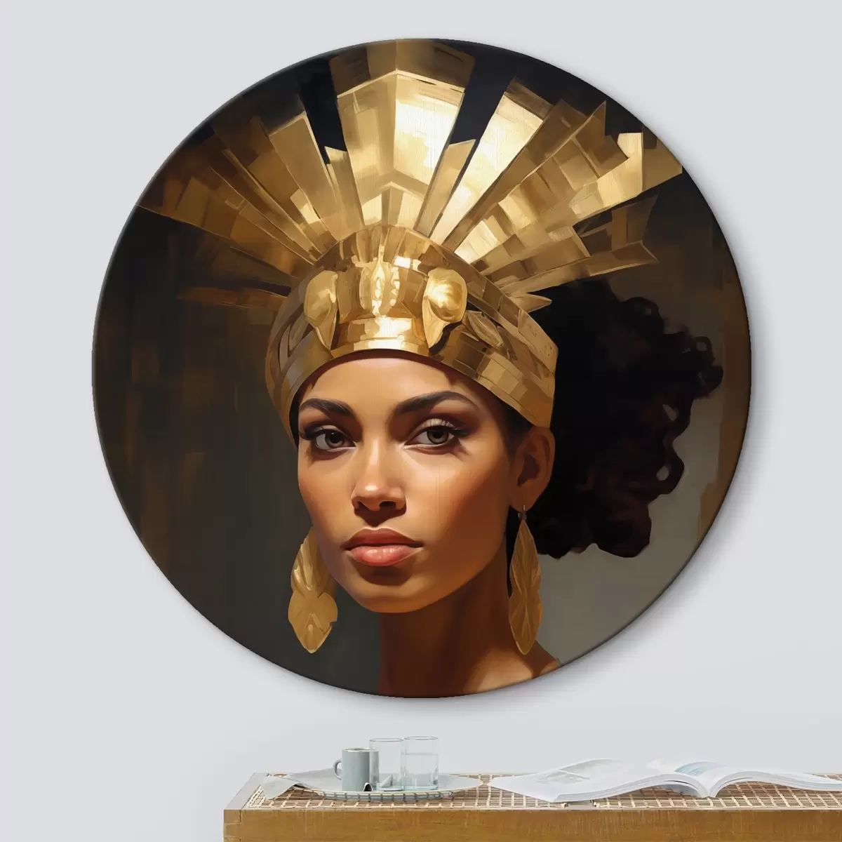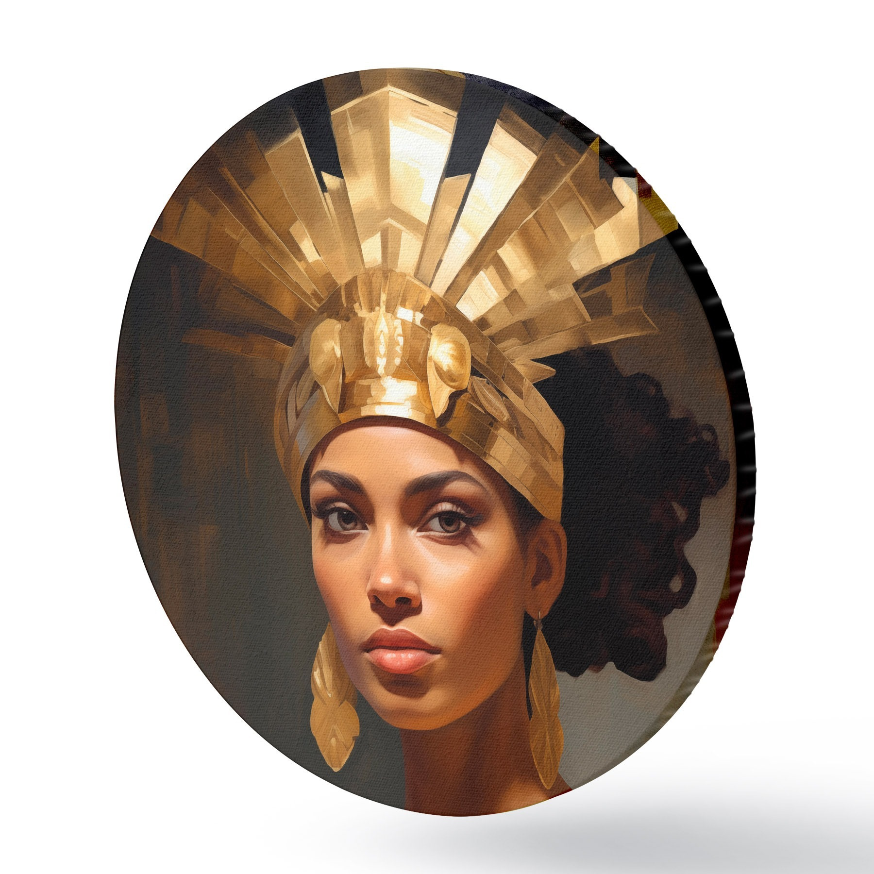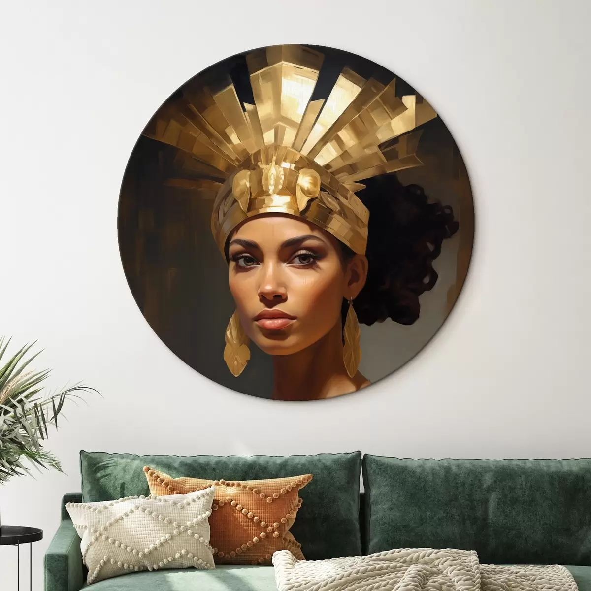 Cuadros redondos Retrato de mujer con majestuoso tocado y adornos tradicionales r42931