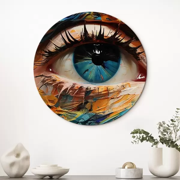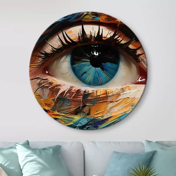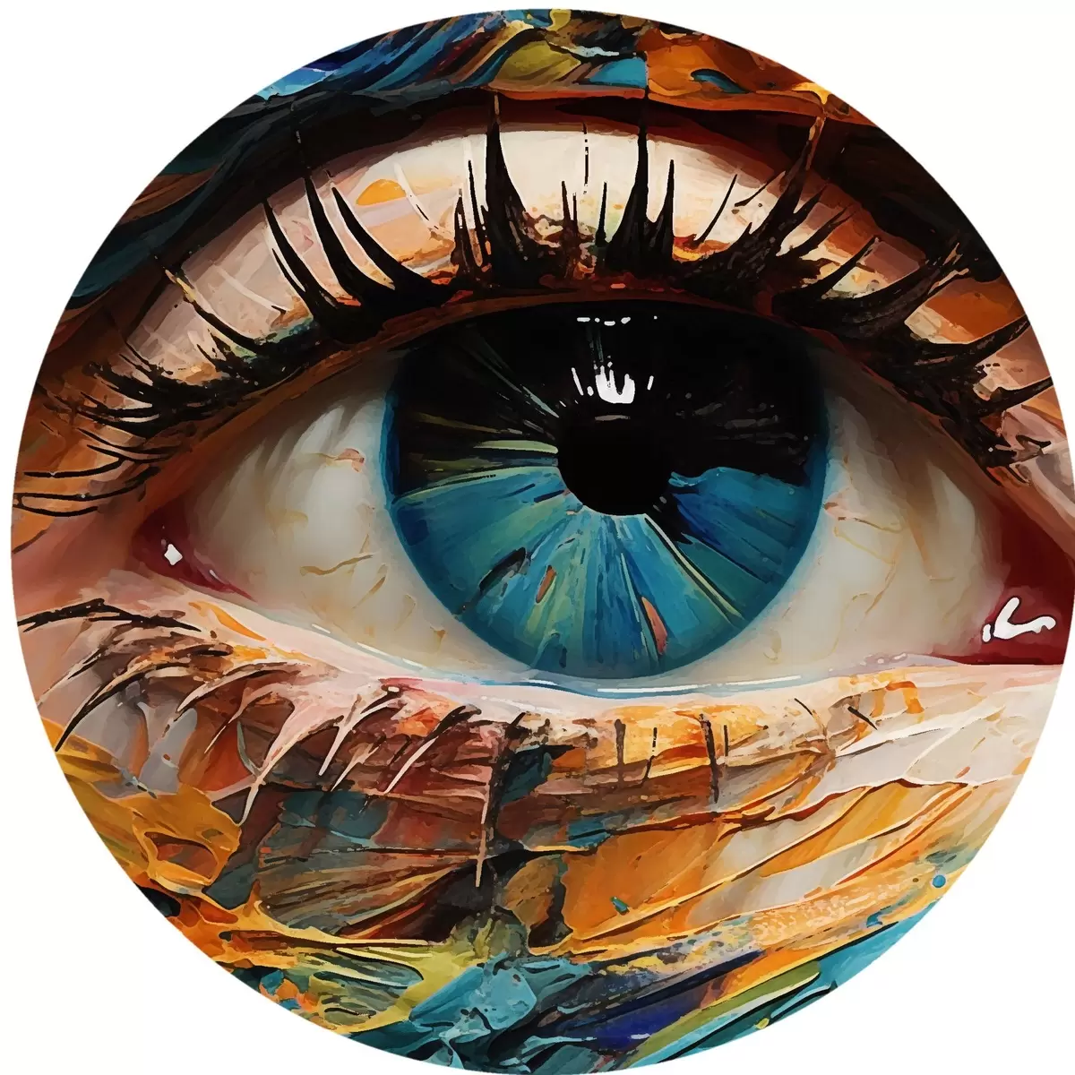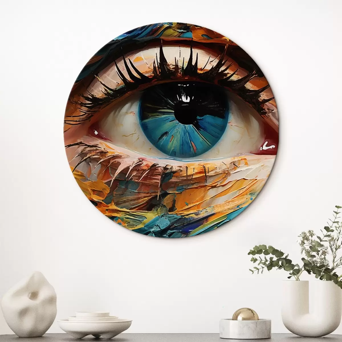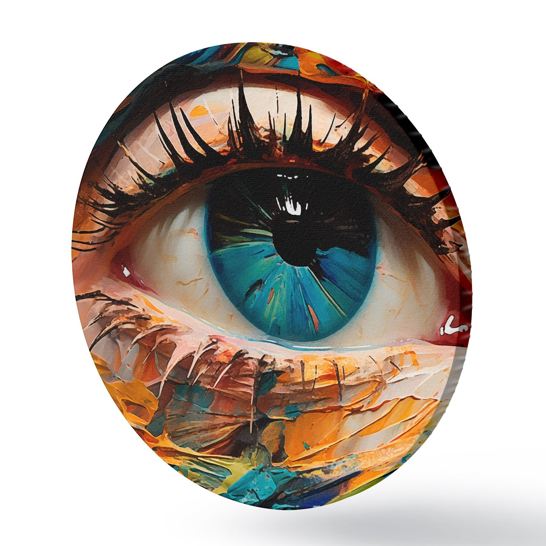 Cuadros redondos Retrato abstracto de un ojo en colores vibrantes, con efecto de pintura texturizada r42938