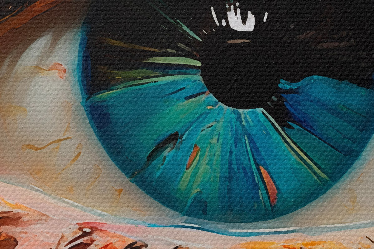Foto Retrato abstracto de un ojo en colores vibrantes, con efecto de pintura texturizada Nr r42938