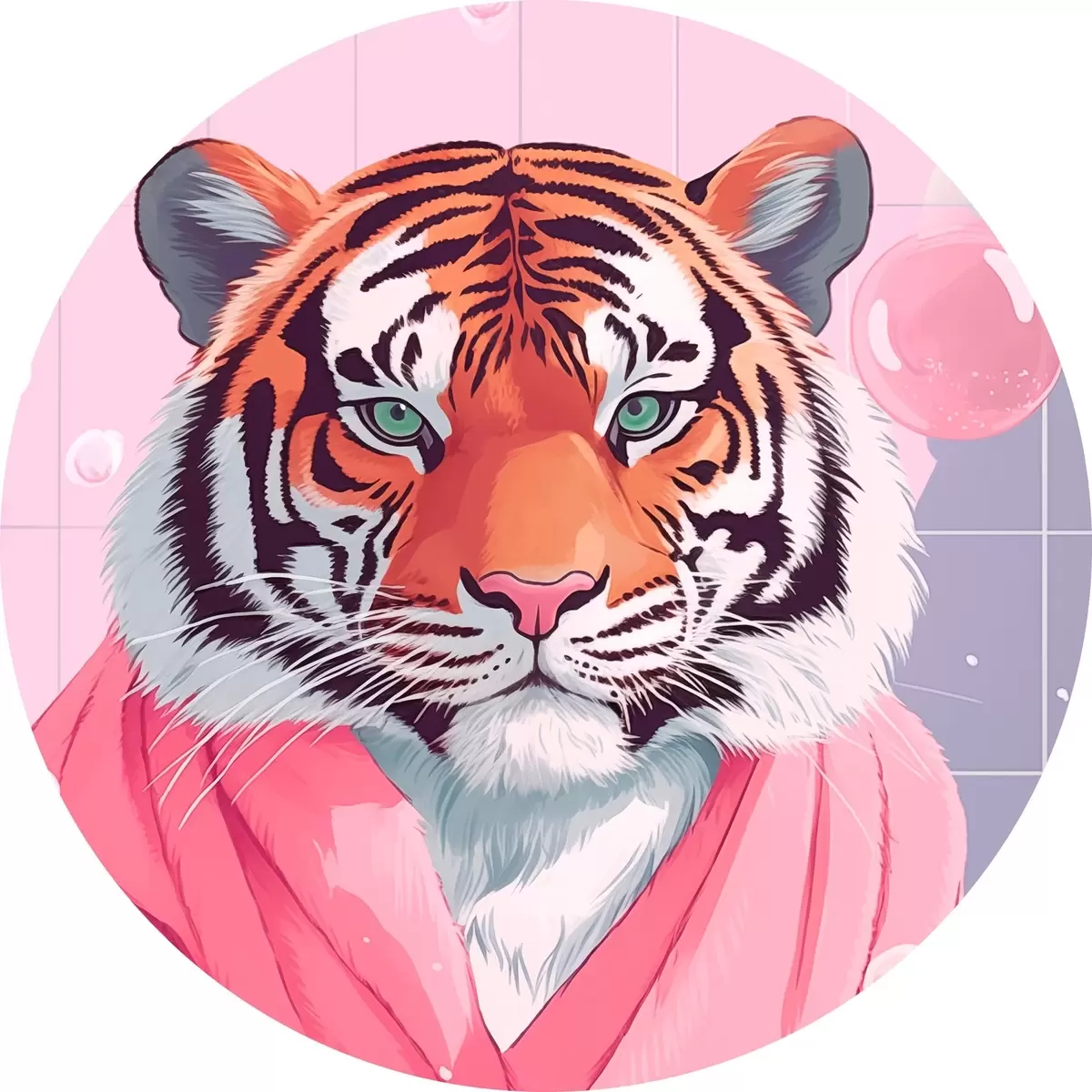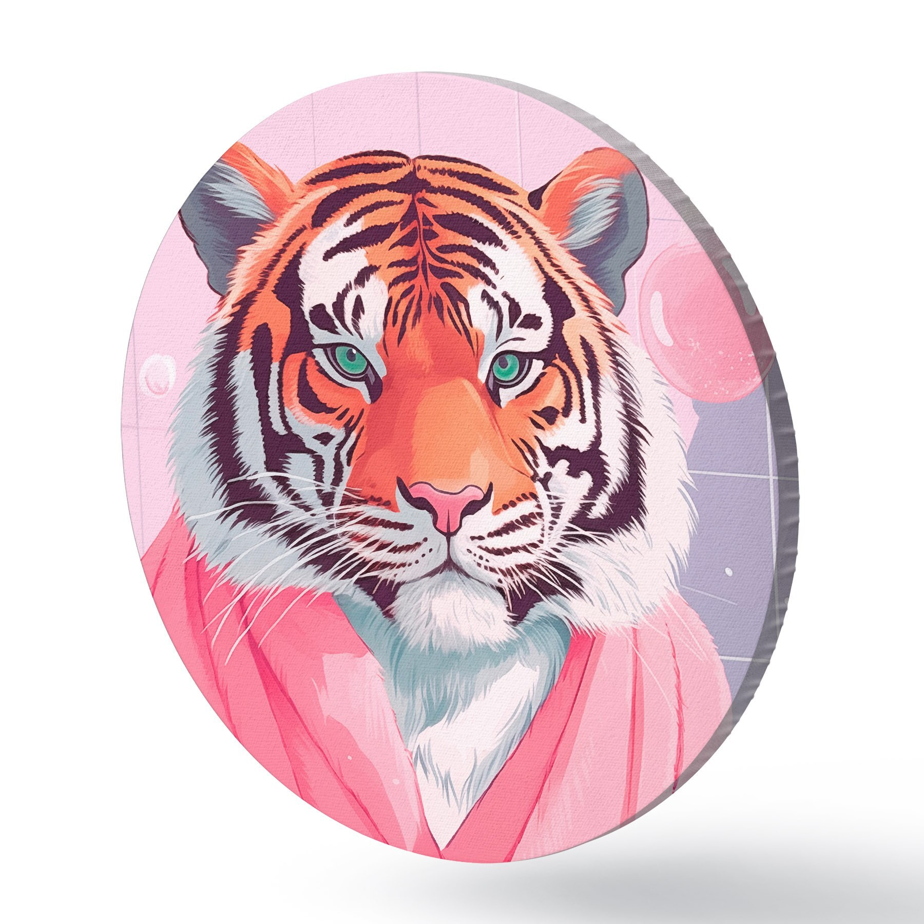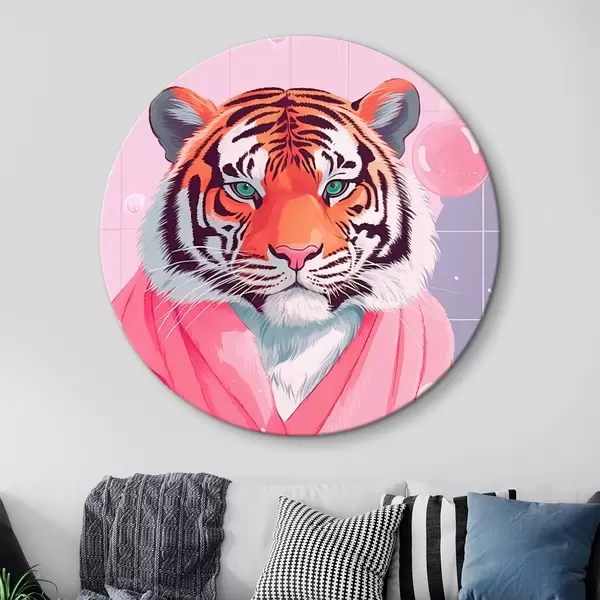 Cuadros redondos Tigre en toalla rosa r42942
