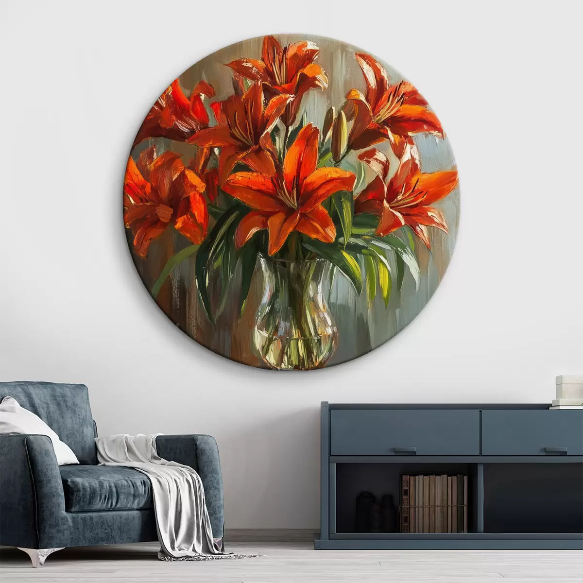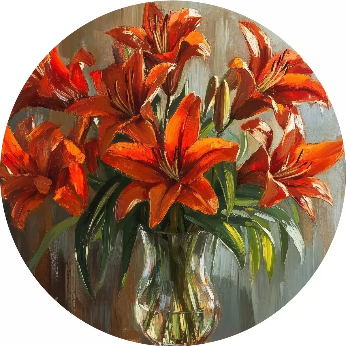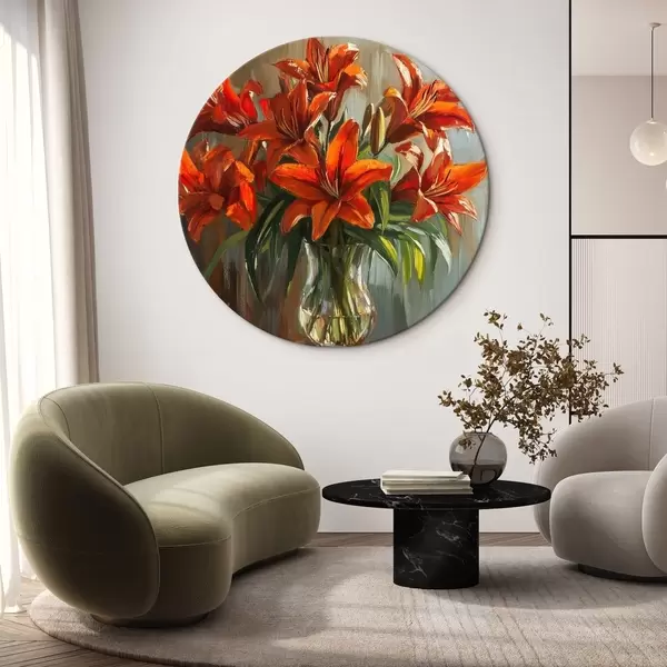 Cuadros redondos Lirios rojos al óleo r42977