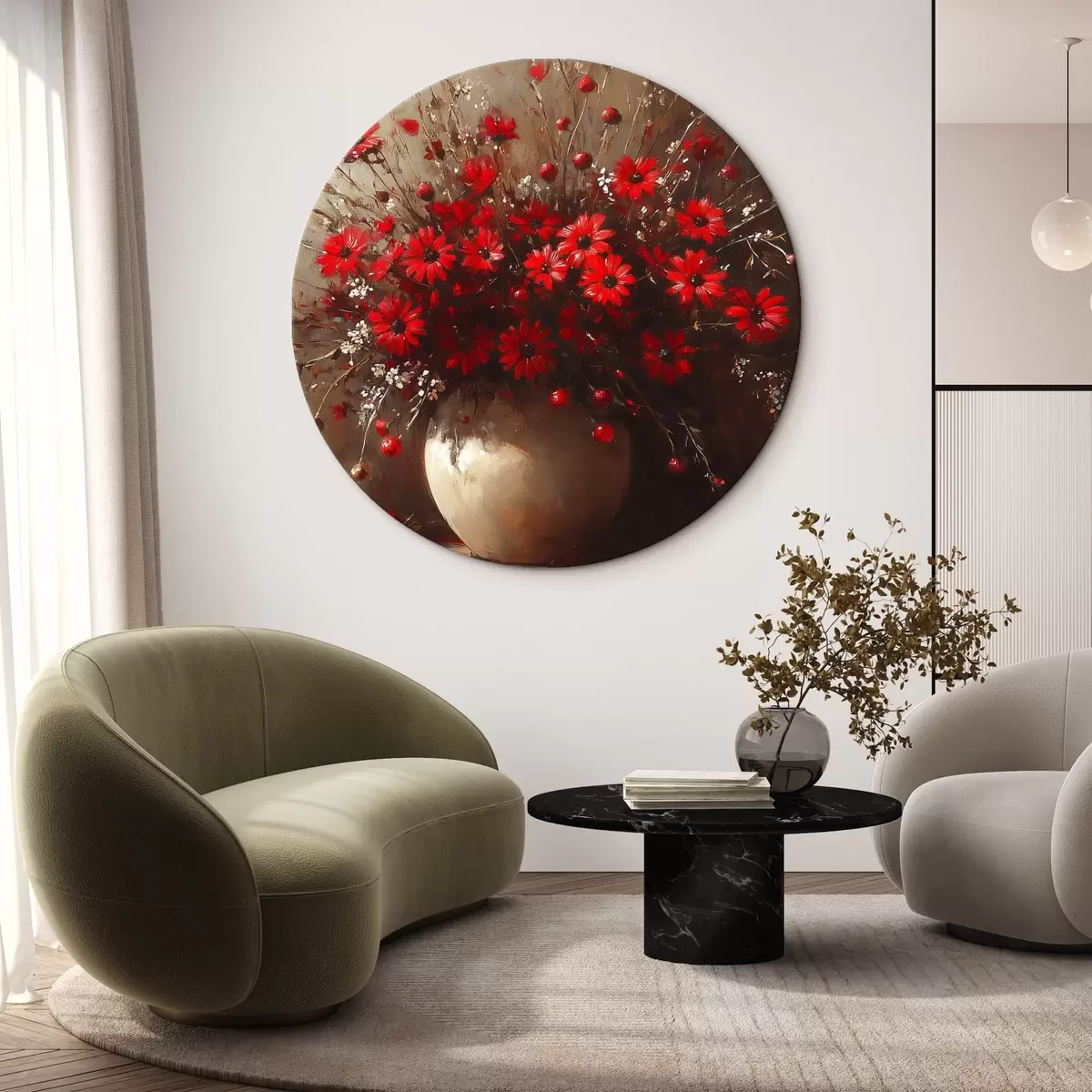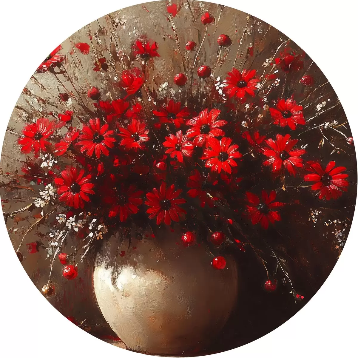 Cuadros redondos Ramo rojo en jarrón r42983