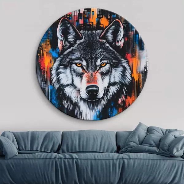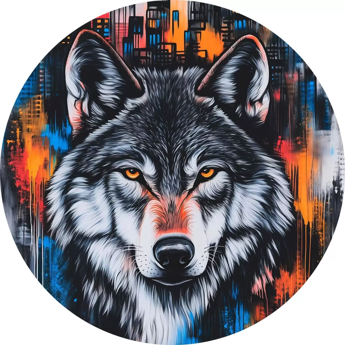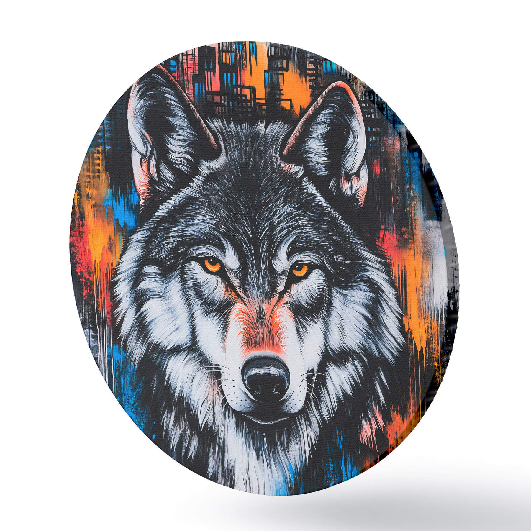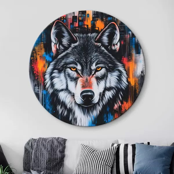 Cuadros redondos Un lobo en el fondo de la ciudad r42994