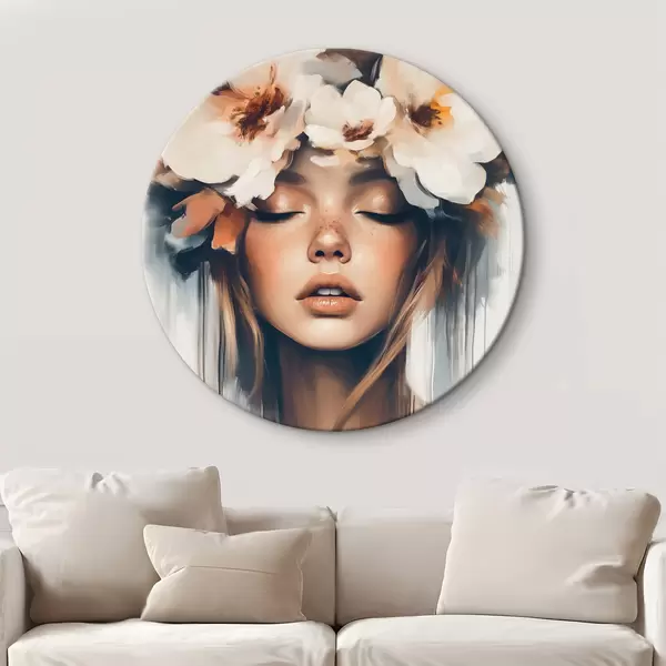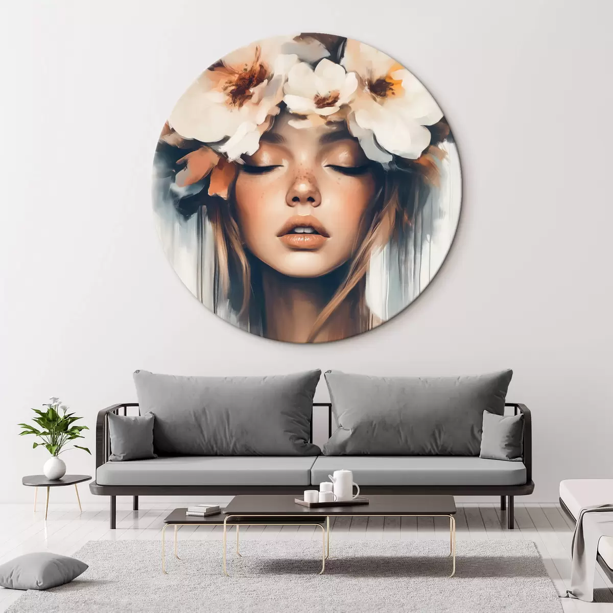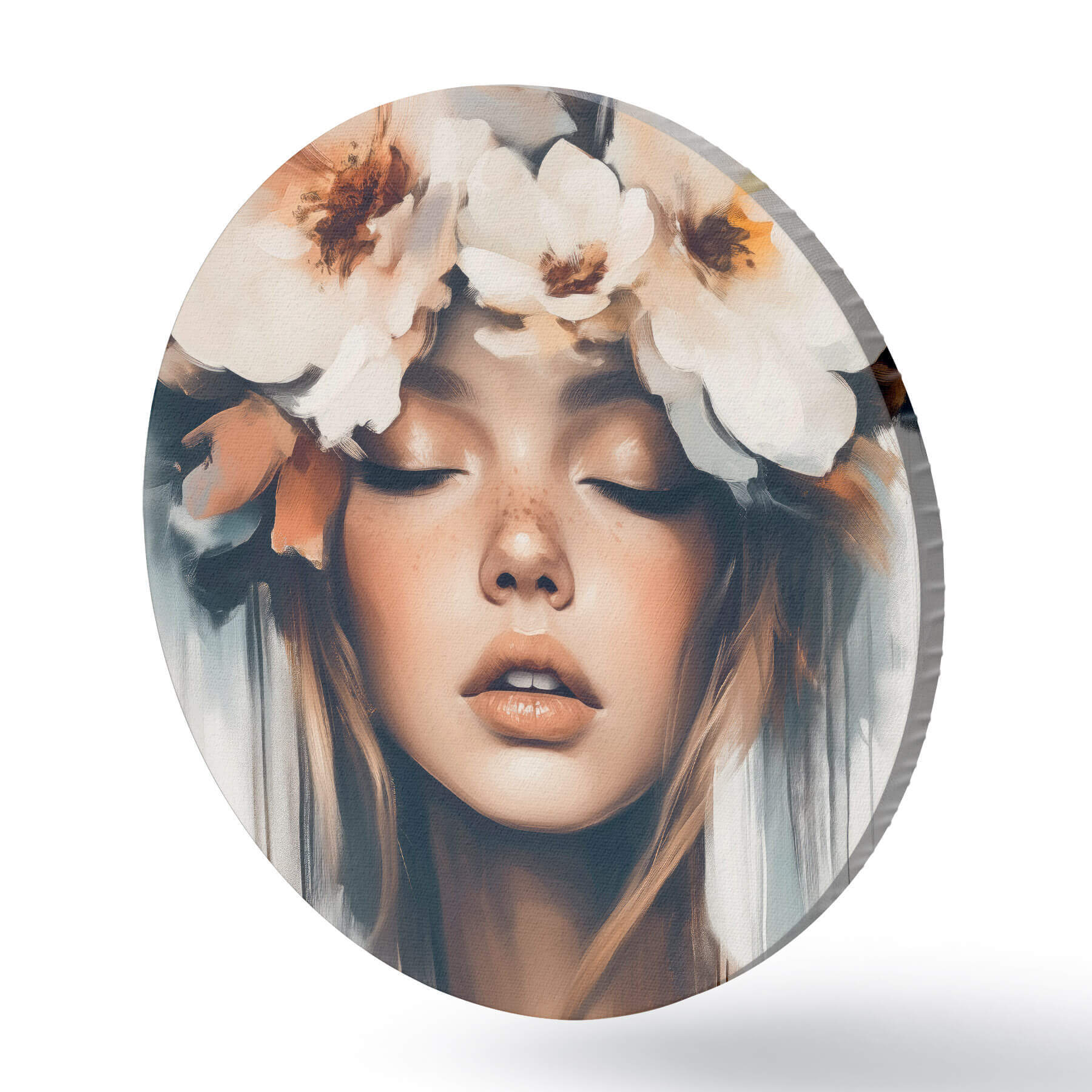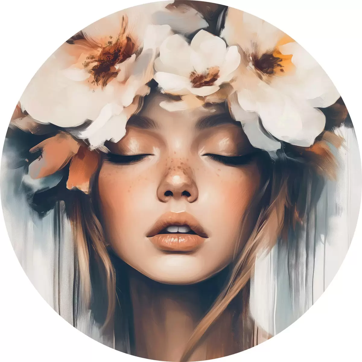 Cuadros redondos Retrato de mujer con flores en el pelo r43001