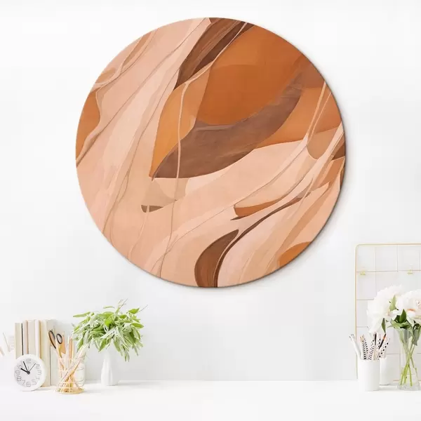 Cuadros redondos Líneas suaves abstractas en tonos marrones r43006