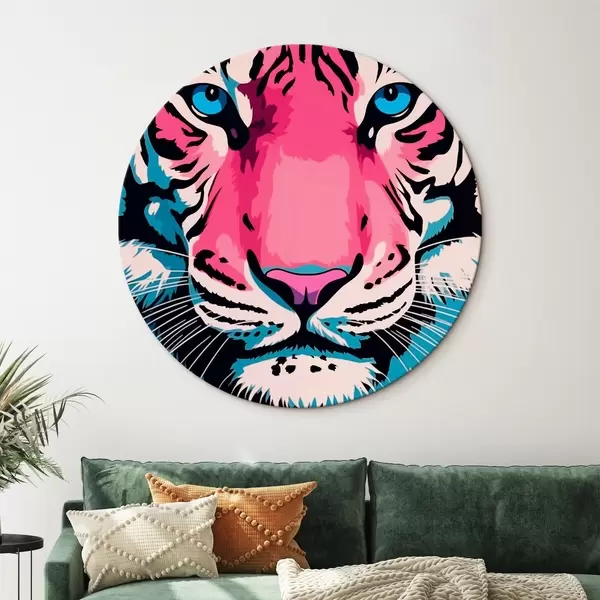 Cuadros redondos Retrato estilizado de un tigre en colores vivos r43007