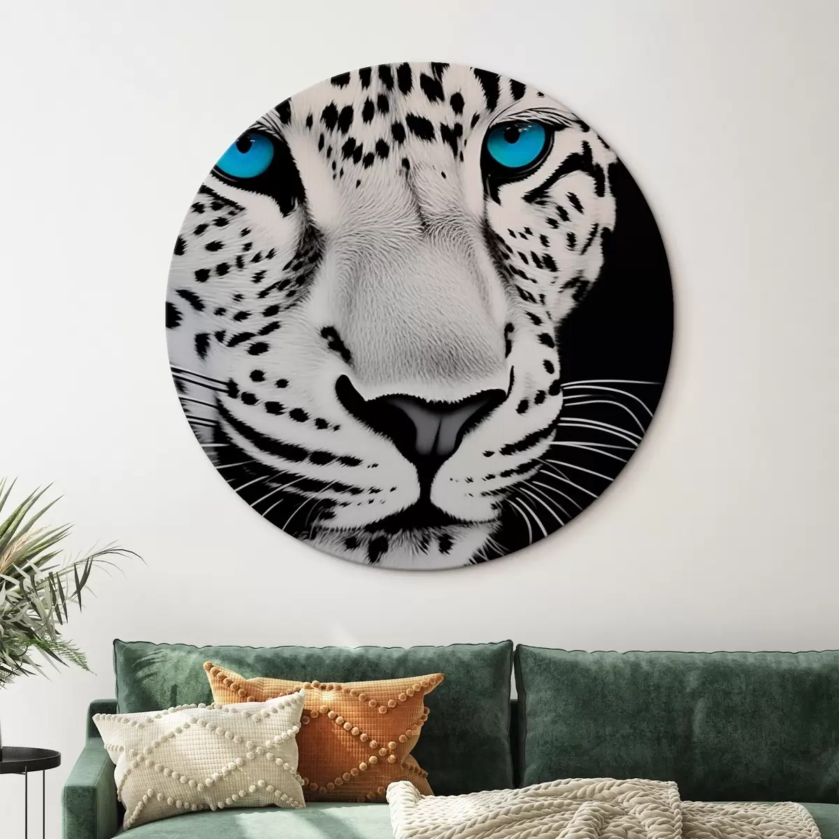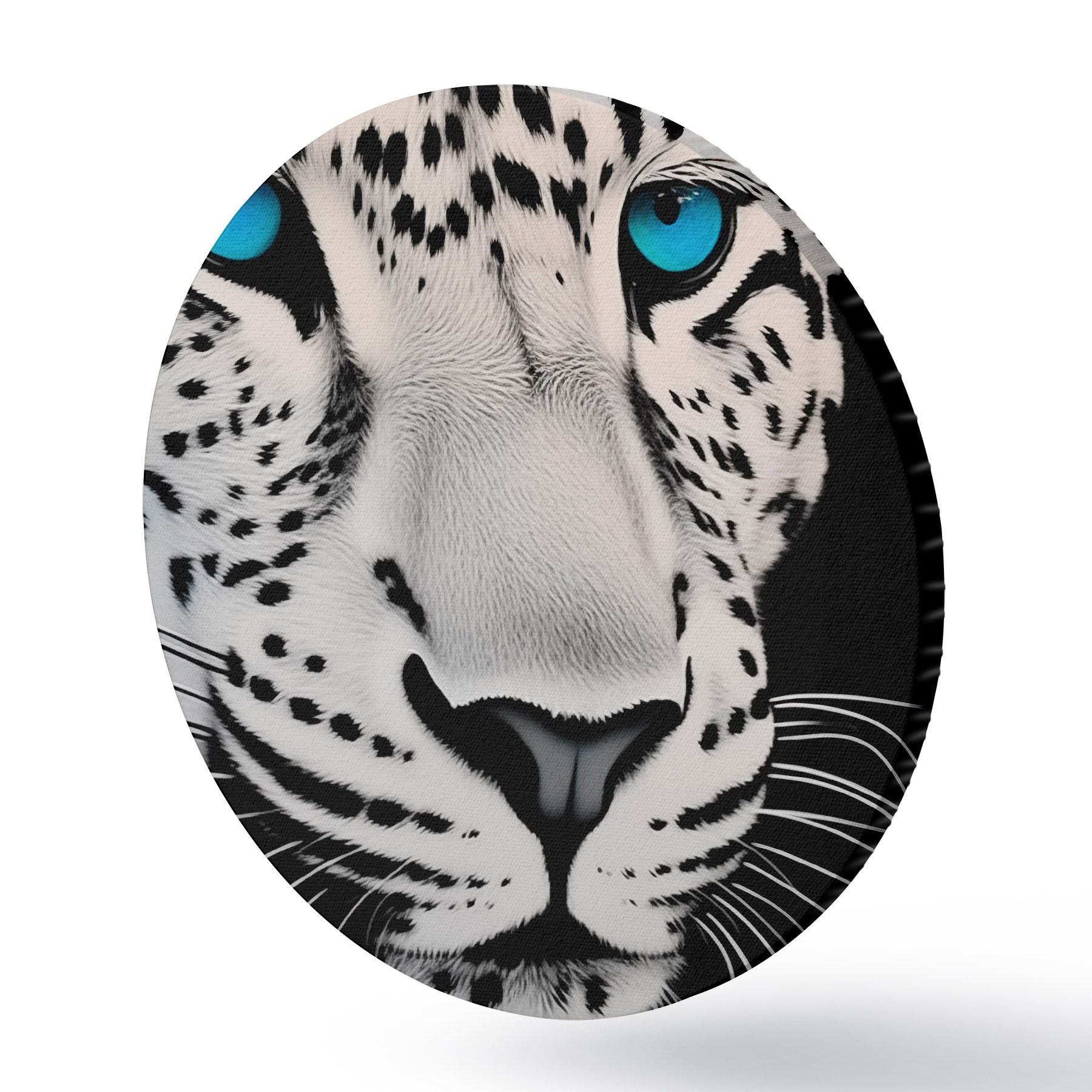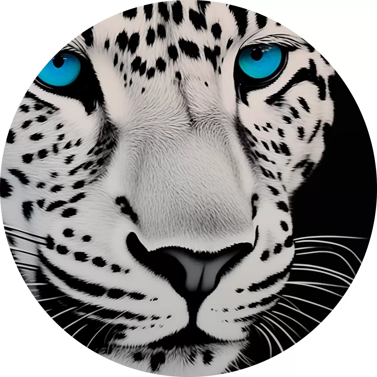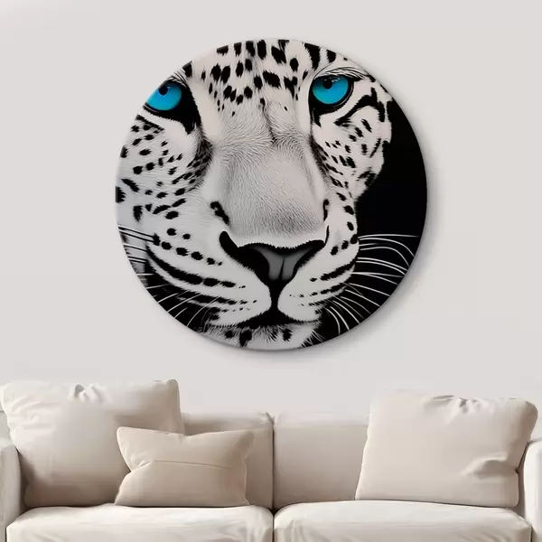 Cuadros redondos Retrato en blanco y negro de un leopardo con ojos azules r43008