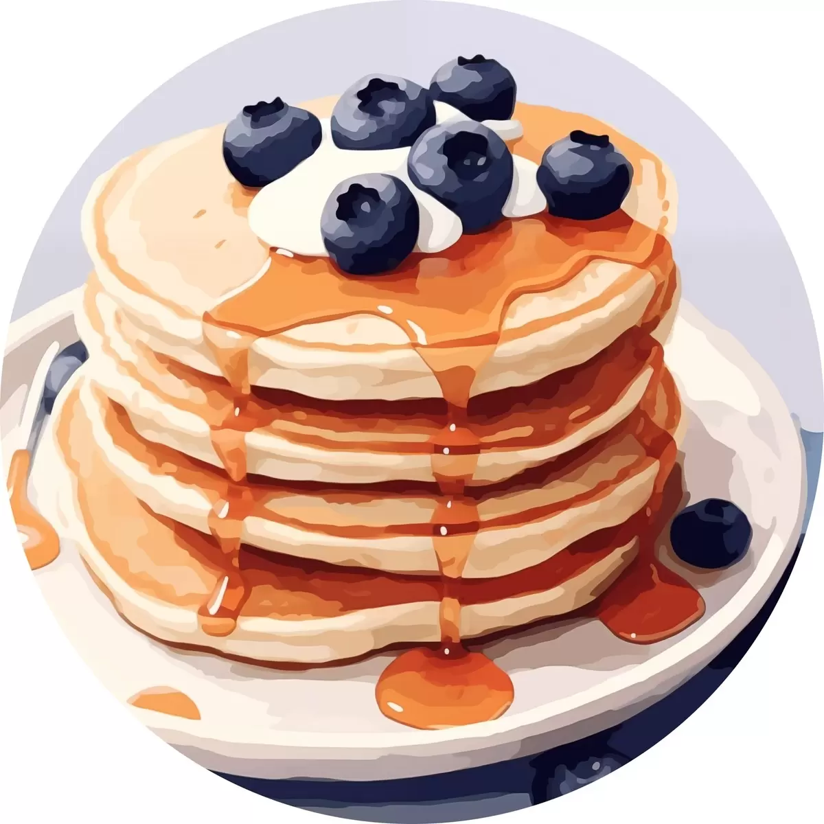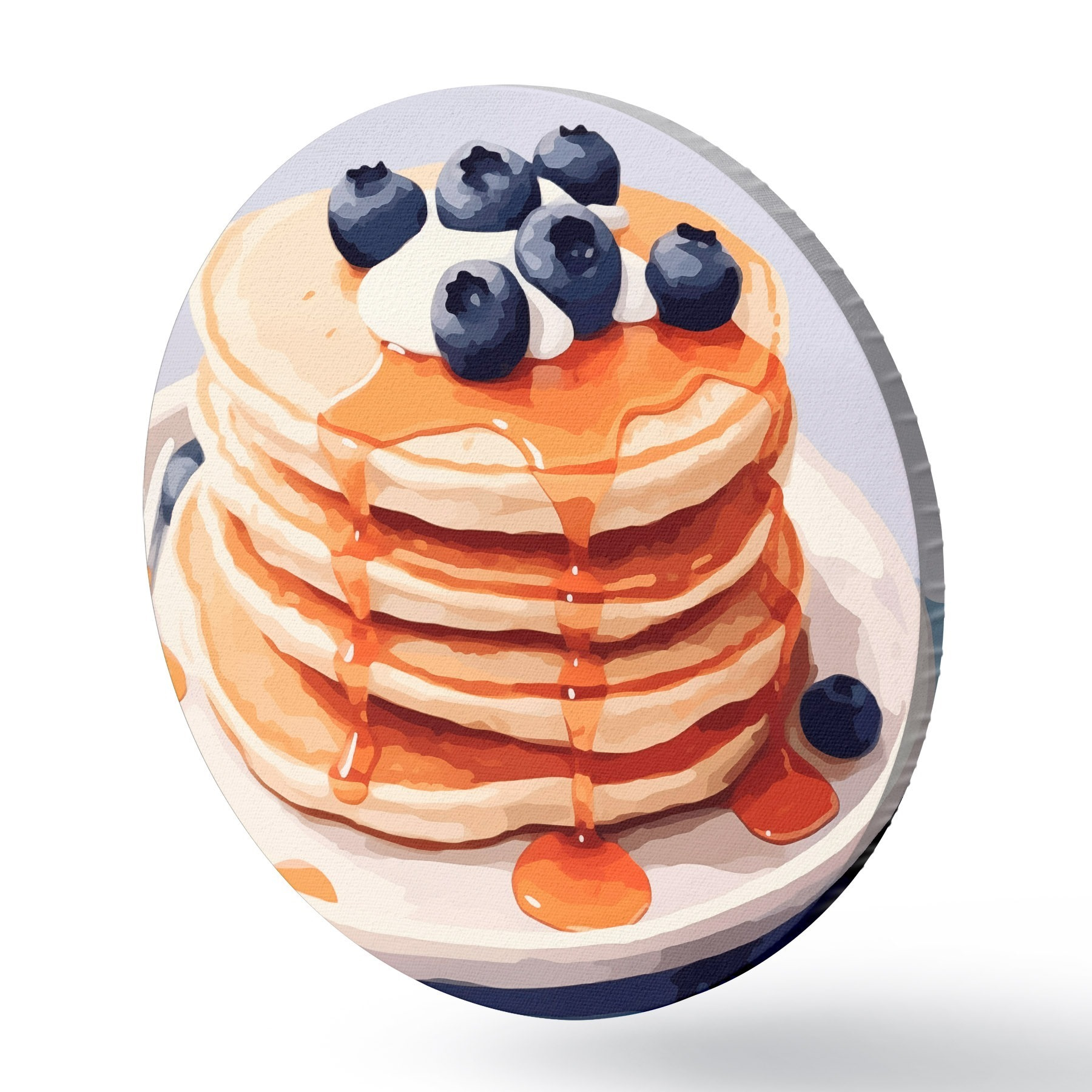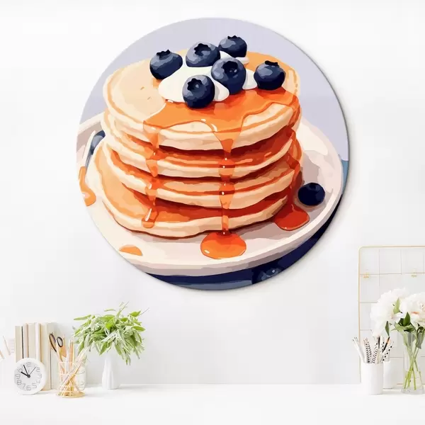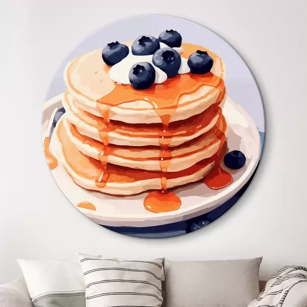 Cuadros redondos Tortitas con sirope y arándanos en un plato r43009
