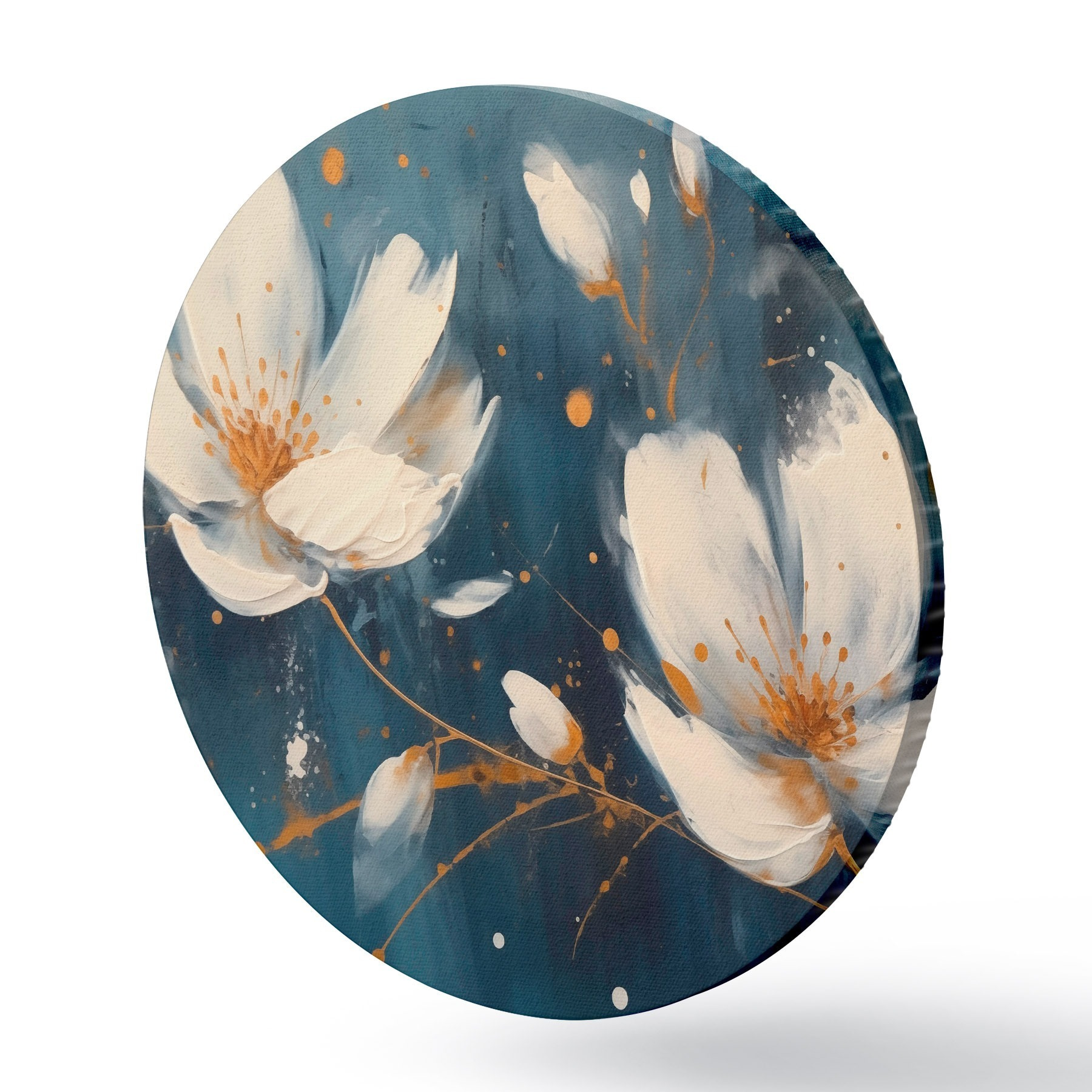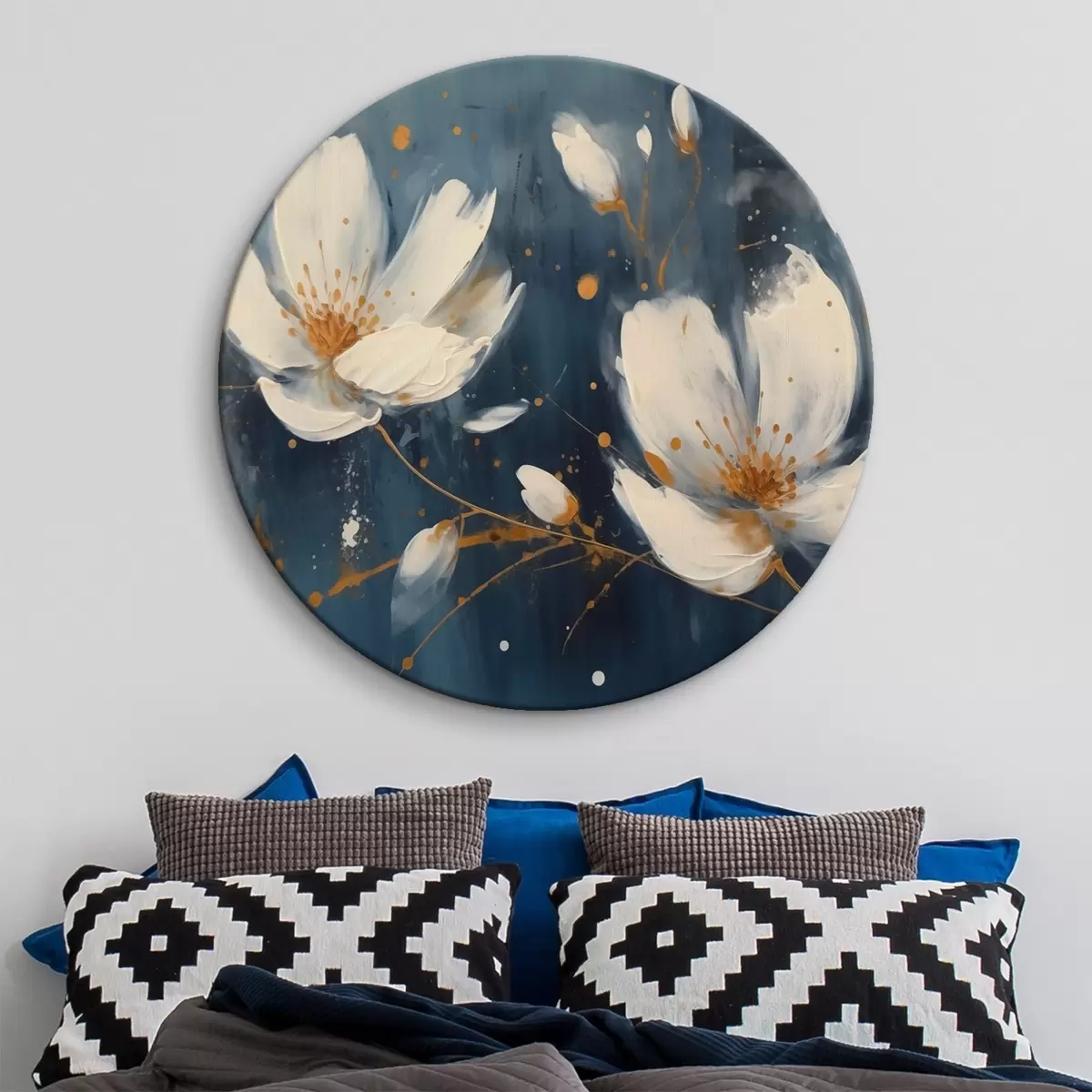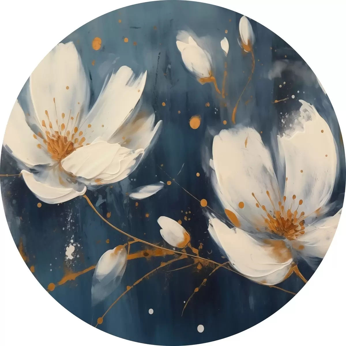 Cuadros redondos Flores blancas sobre un fondo azul r43025
