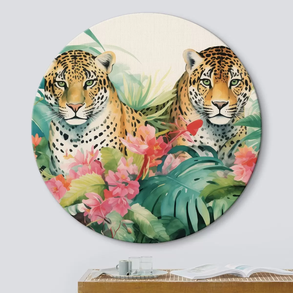 Cuadros redondos Una pareja de leopardos en matorrales tropicales r43036