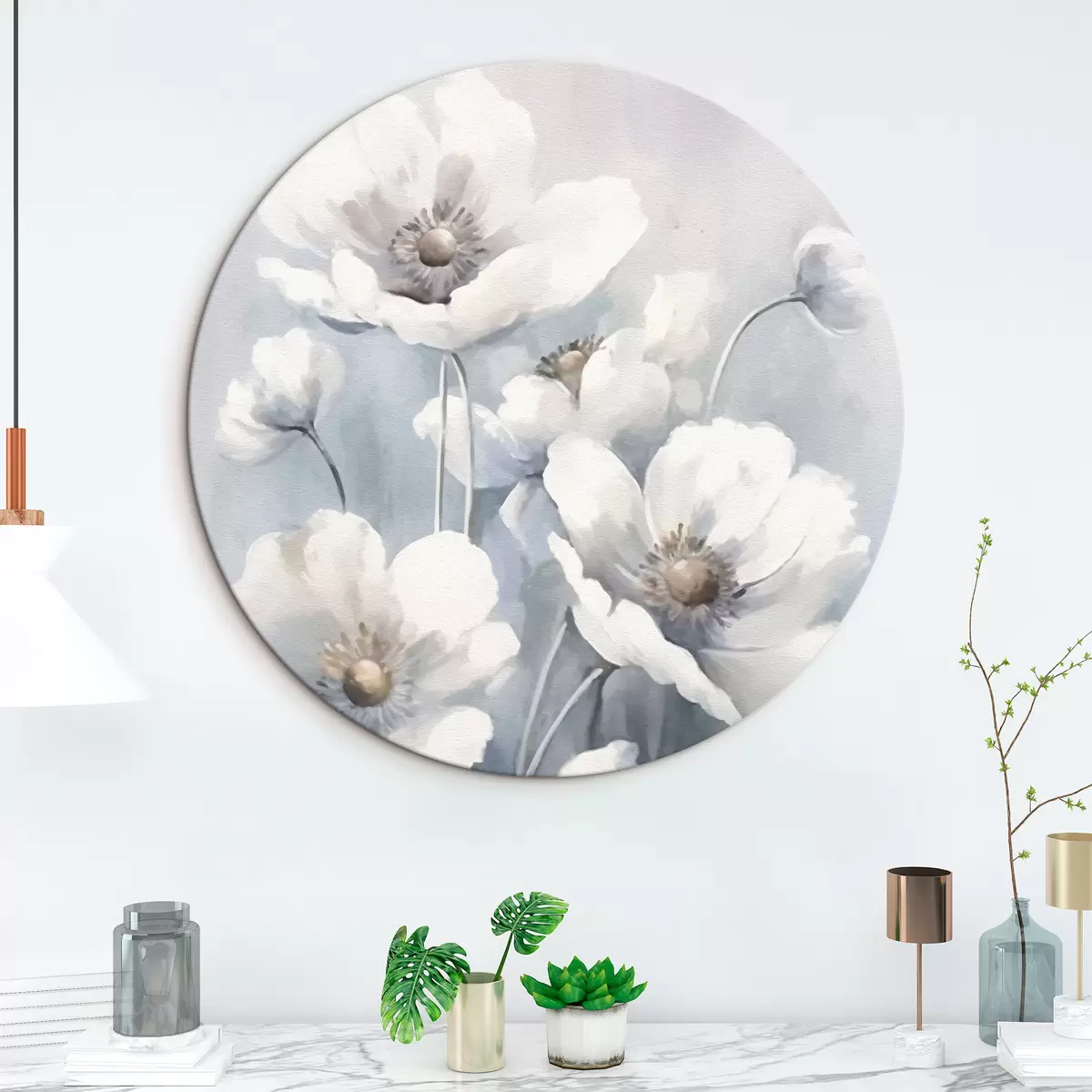 Cuadros redondos Flores vintage blancas r43046