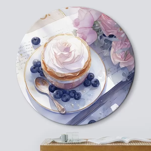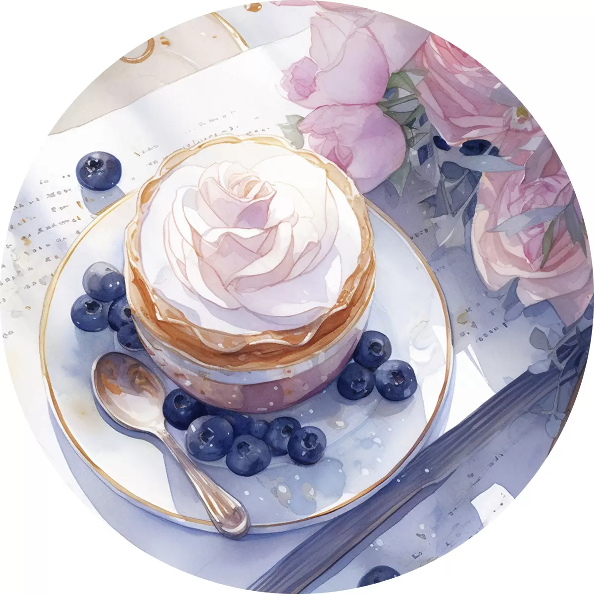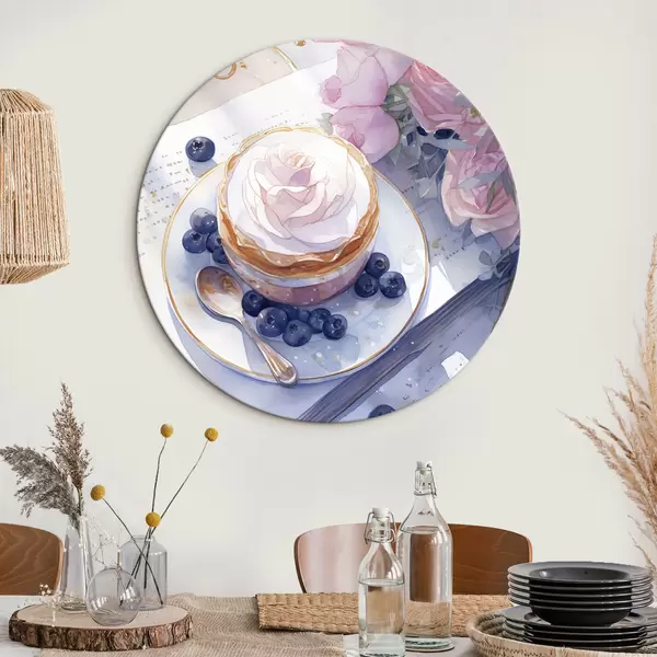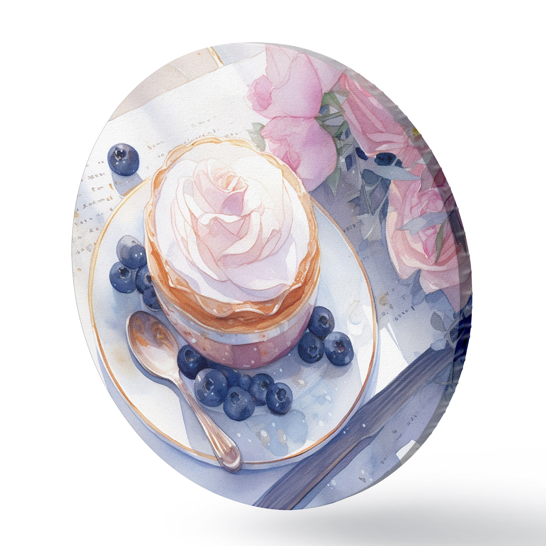 Cuadros redondos Cupcake de arándanos, estilo boho, acuarela, rosas rosas, poético r43053
