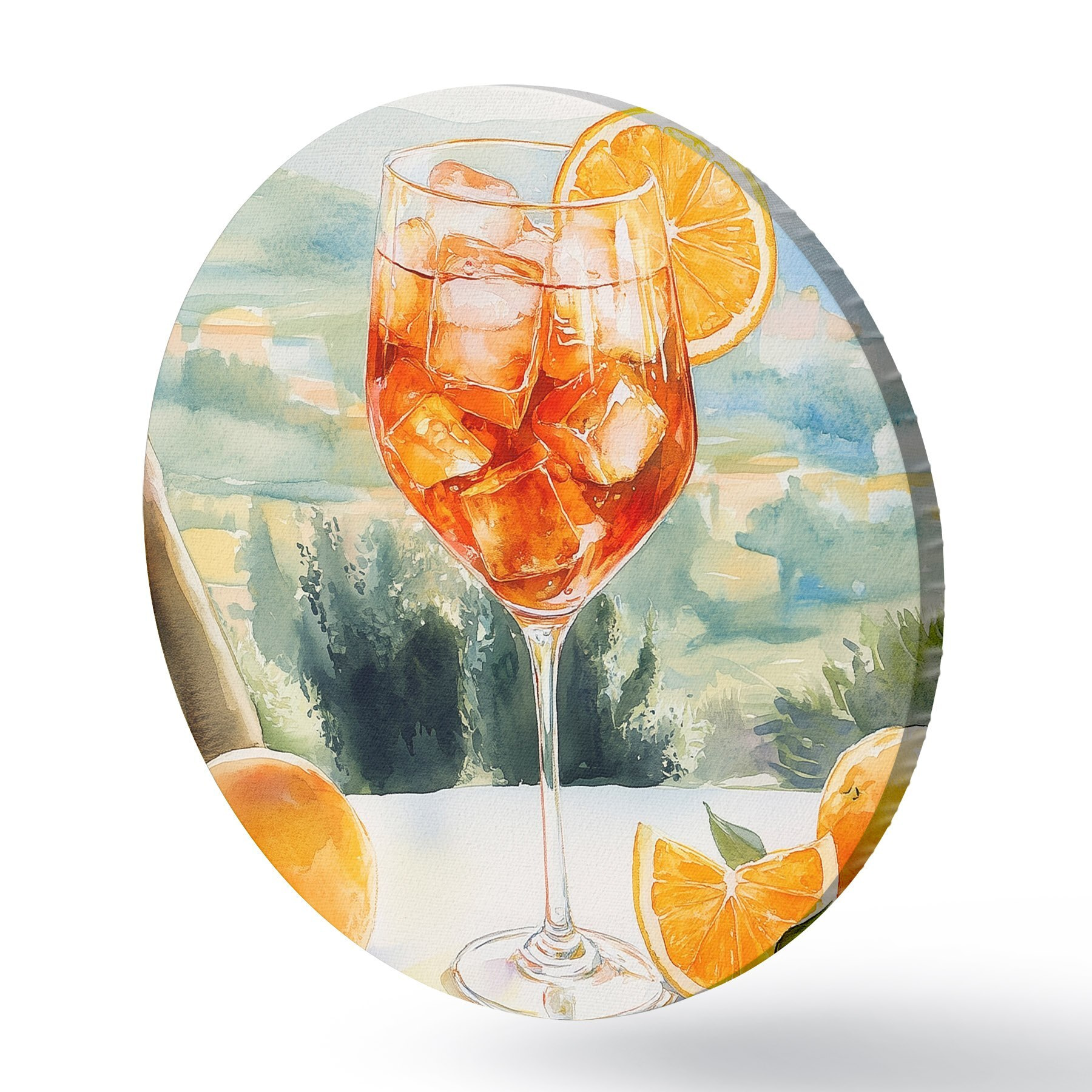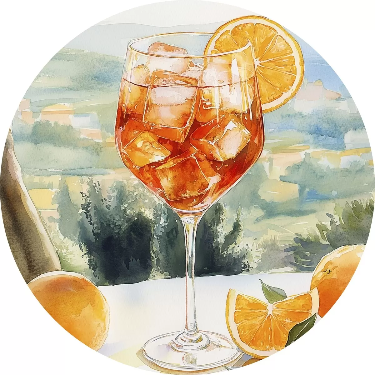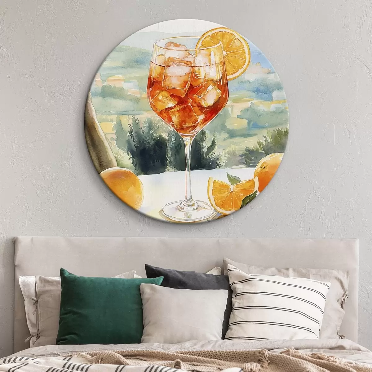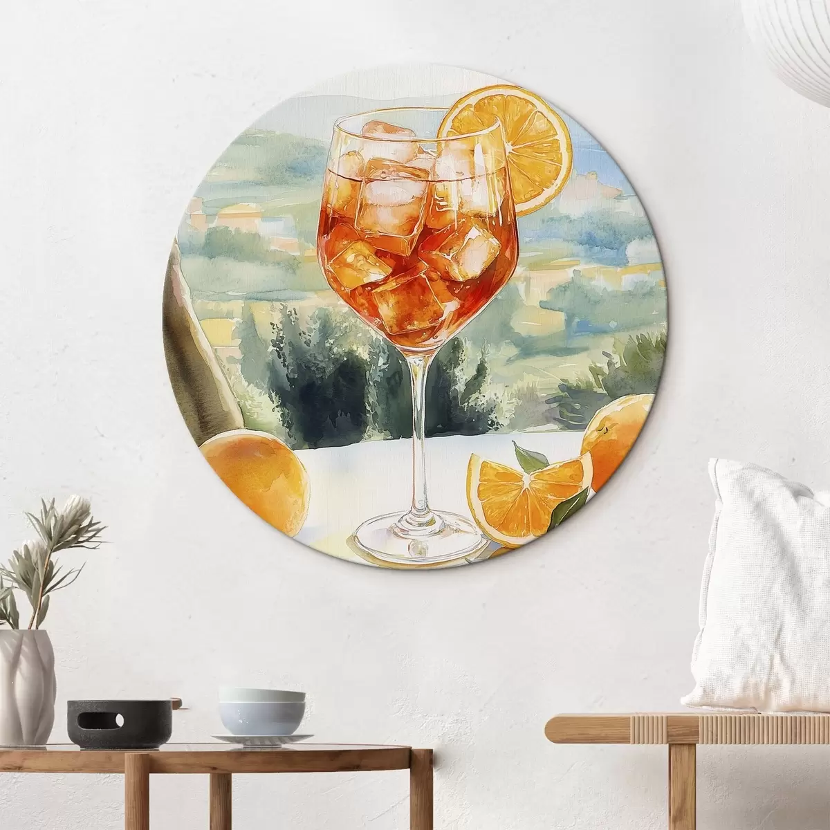 Cuadros redondos Cóctel de verano, Aperol Spritz, naranjas, dibujo estilo acuarela r43058