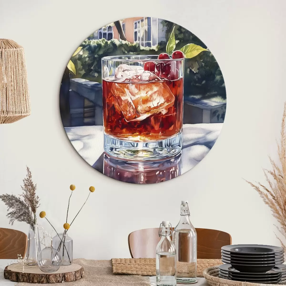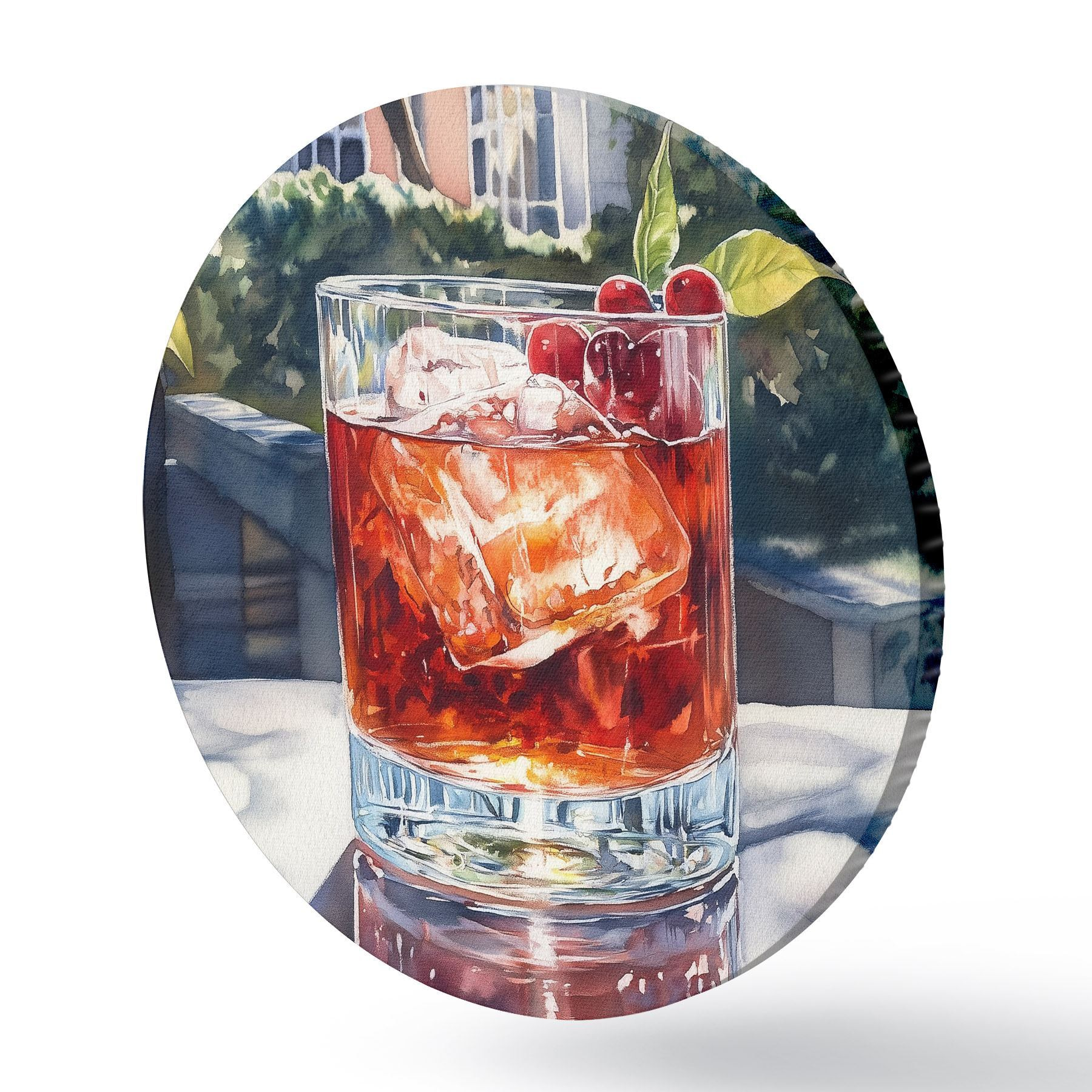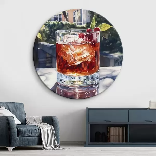 Cuadros redondos Cóctel con bayas, estilo acuarela, estética ciudad, naturaleza verano r43059