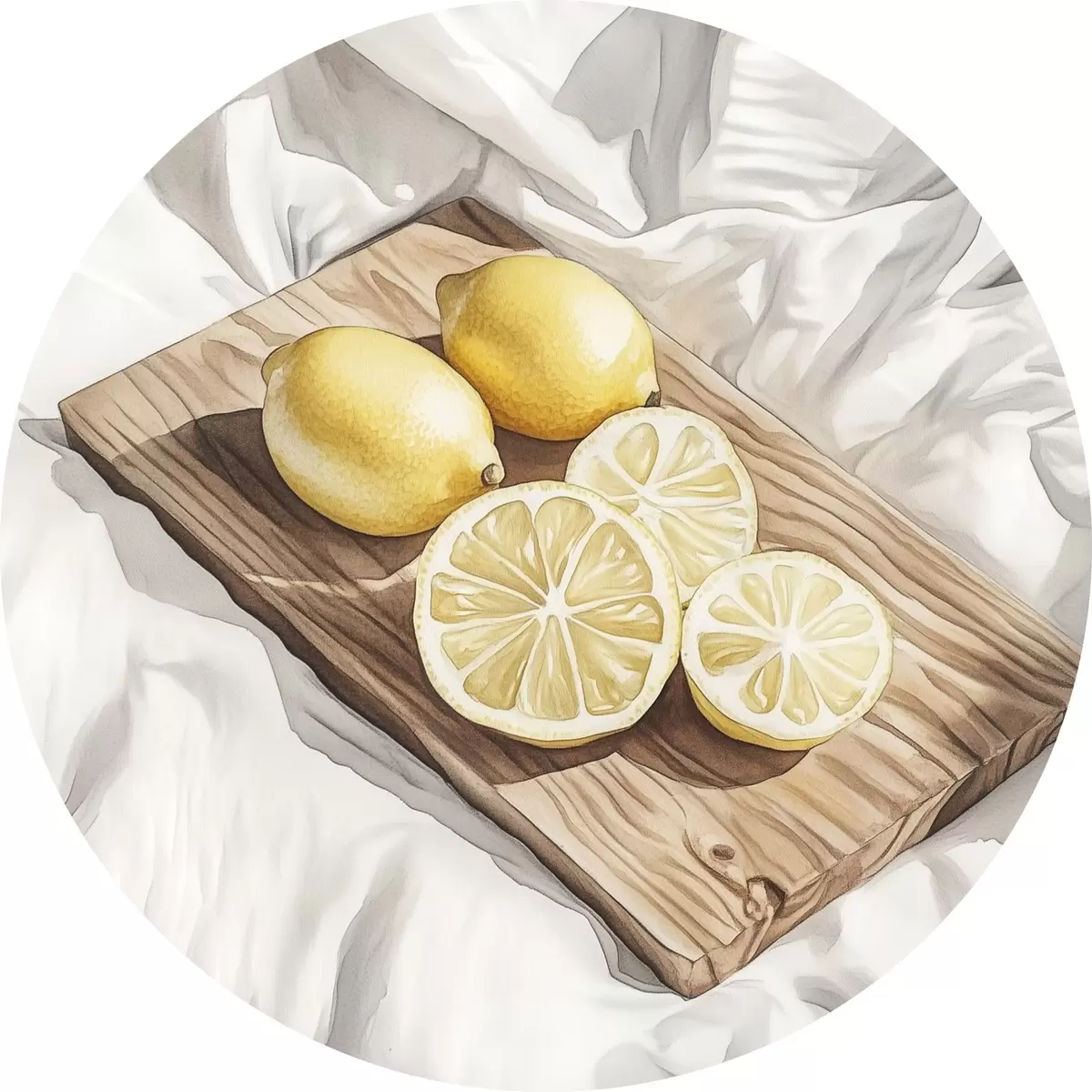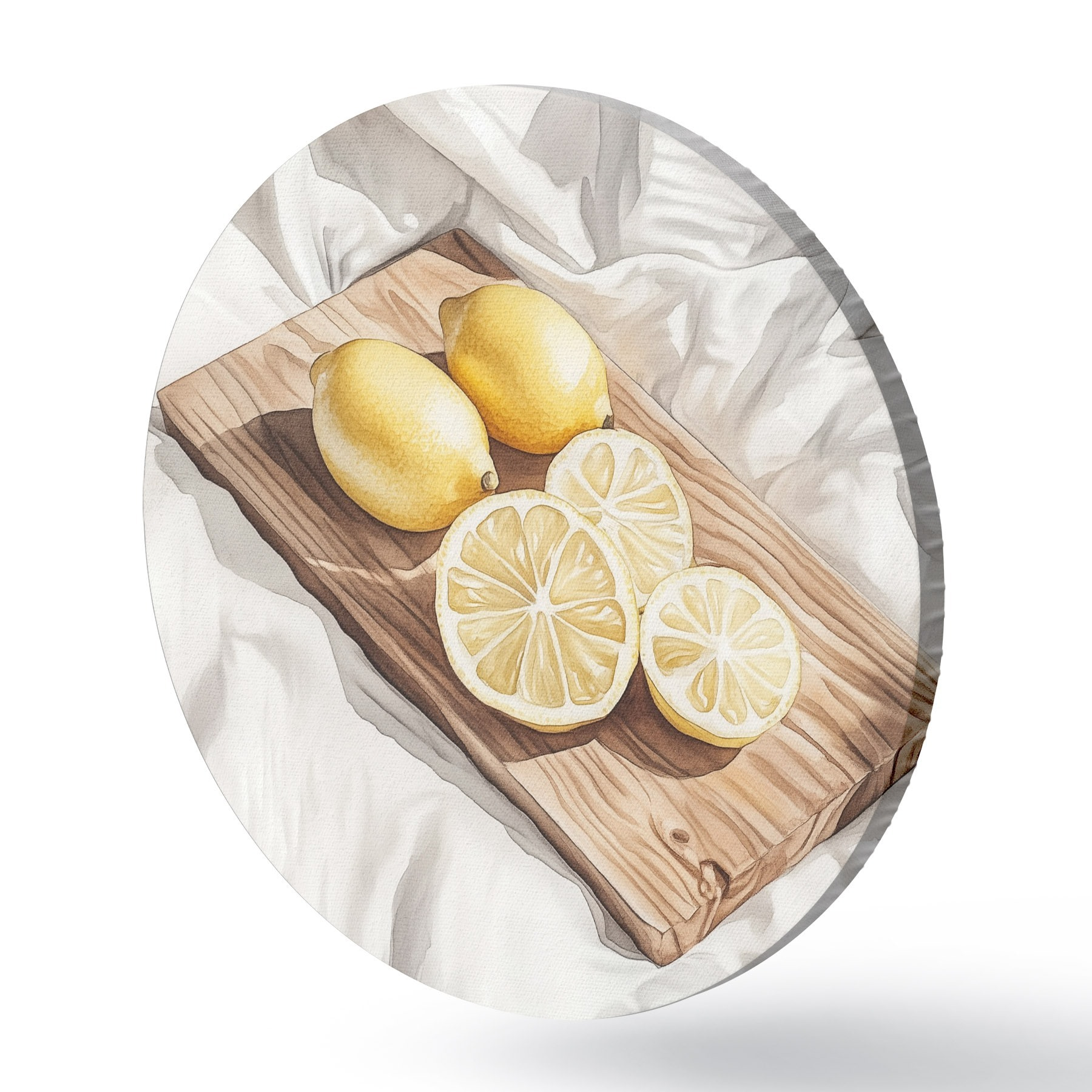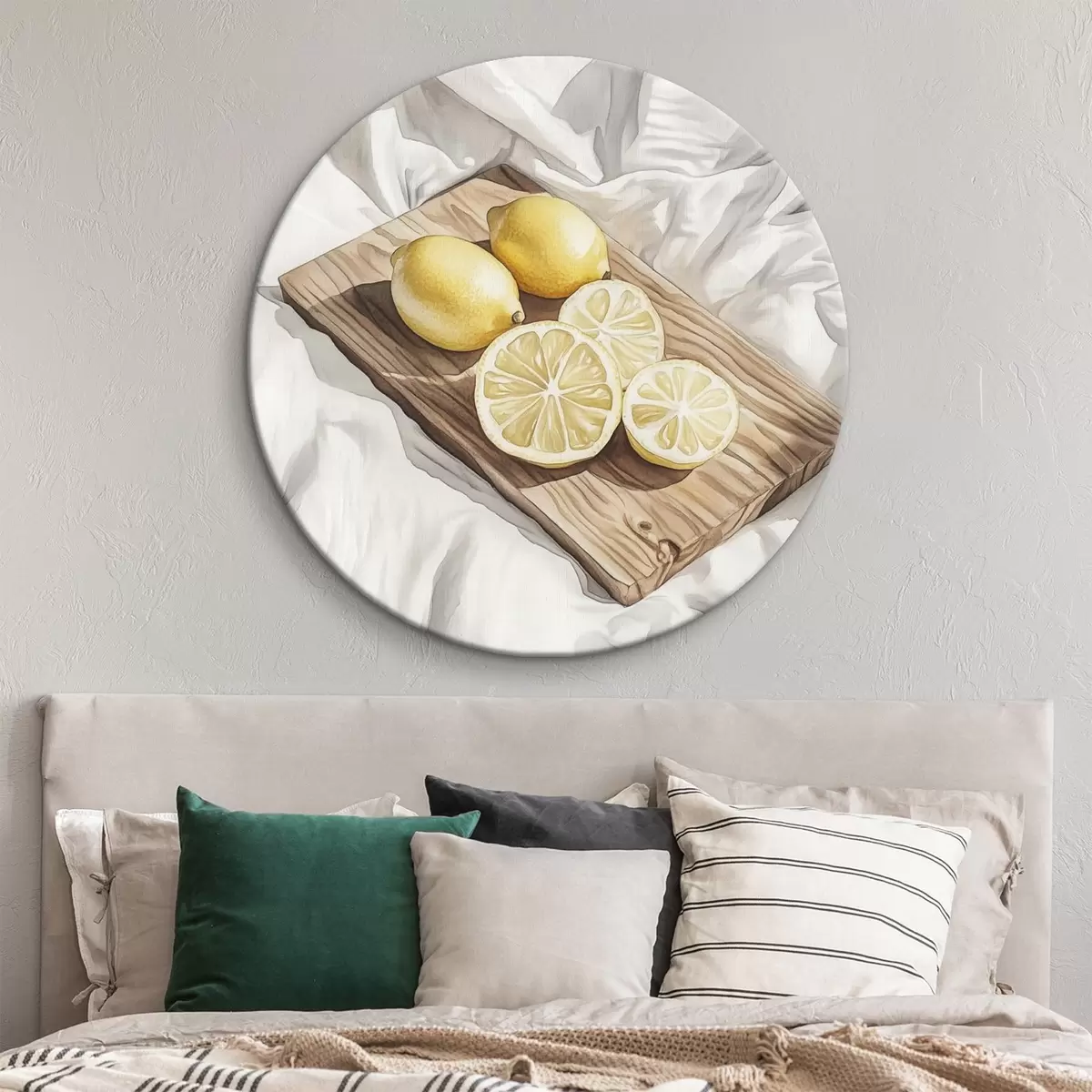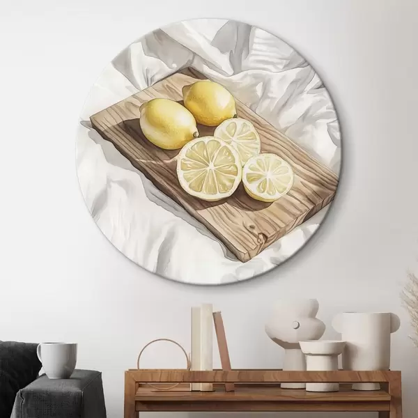 Cuadros redondos Limones en la tabla de madera, acuarela, estilo rústico r43064