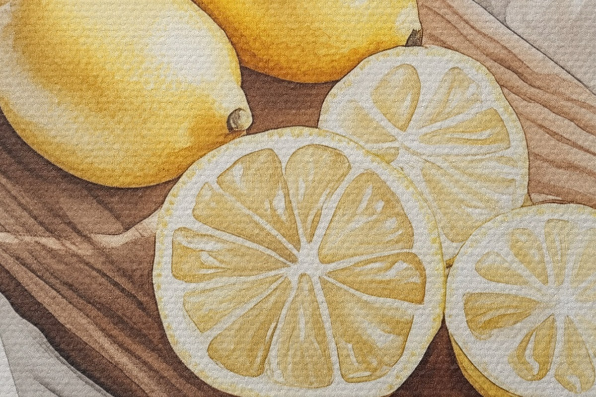 Foto Limones en la tabla de madera, acuarela, estilo rústico Nr r43064