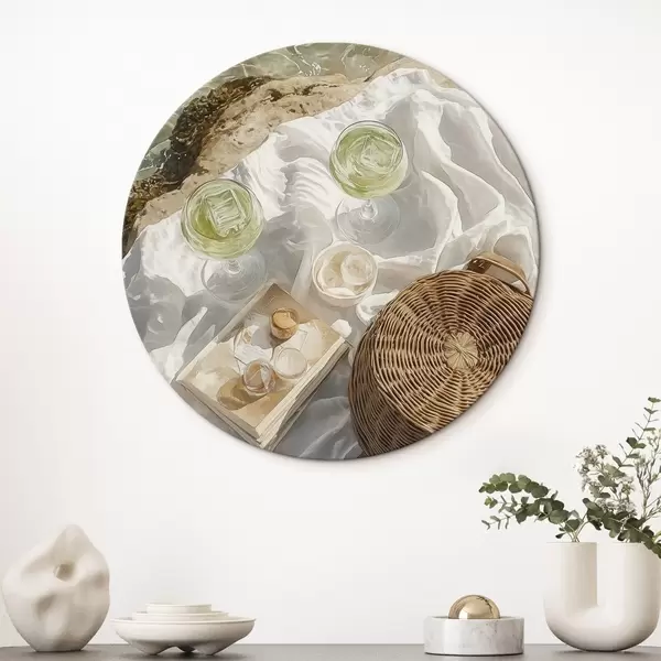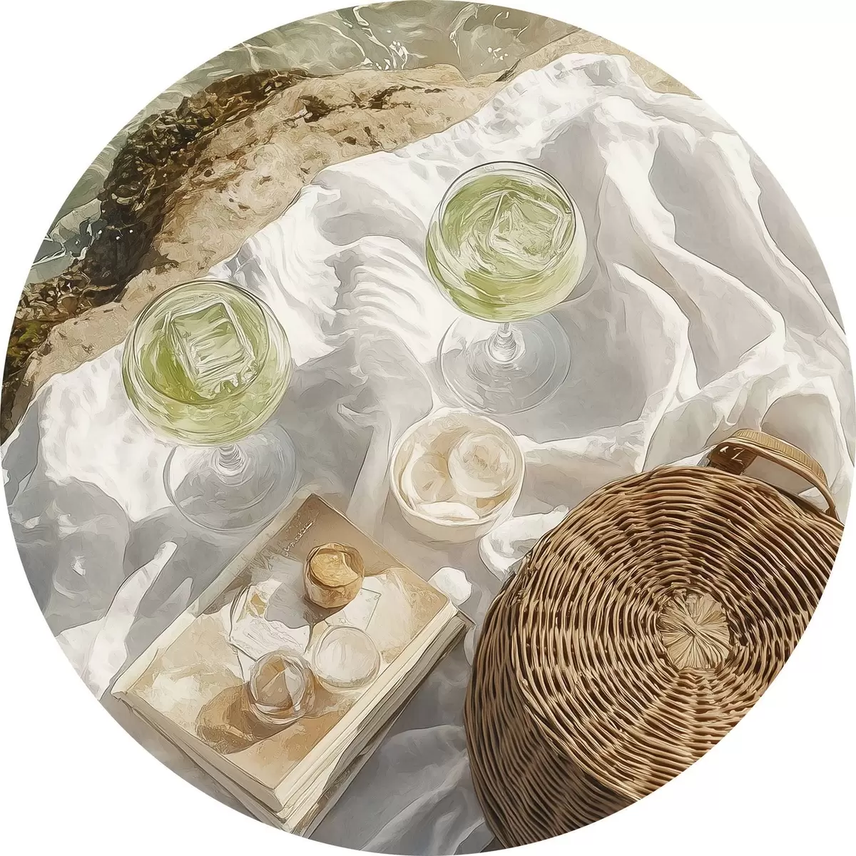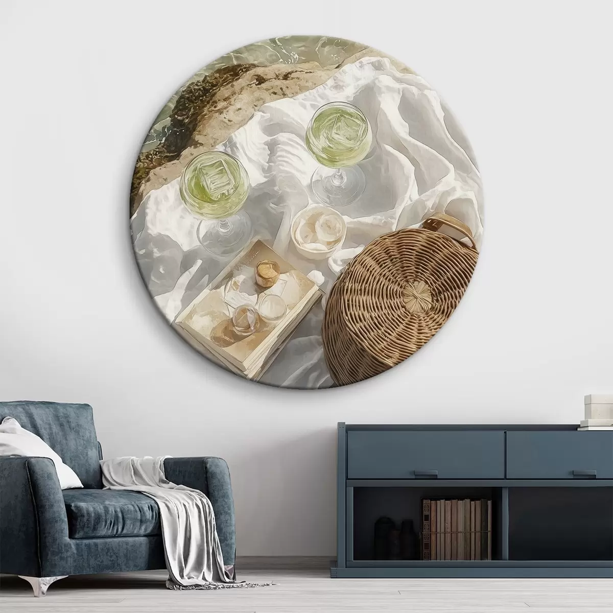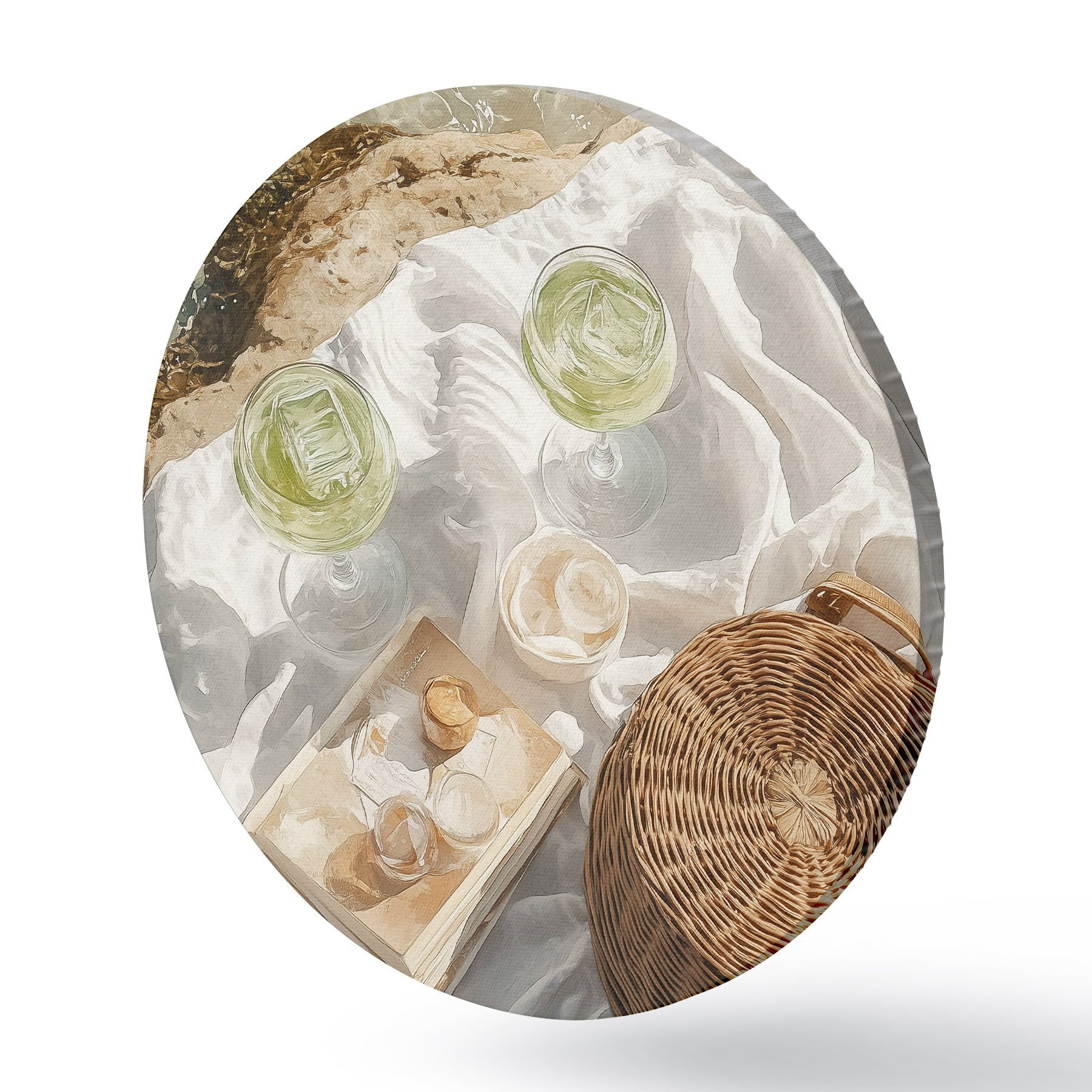 Cuadros redondos Estética veraniega, olas del mar, playa, cócteles, estilo acuarela r43069