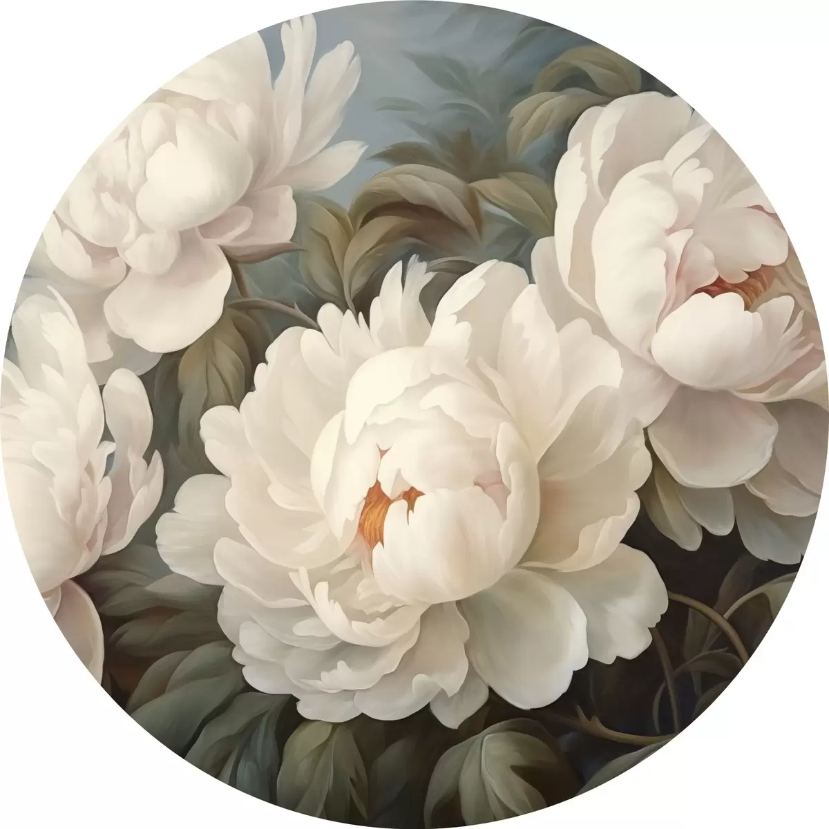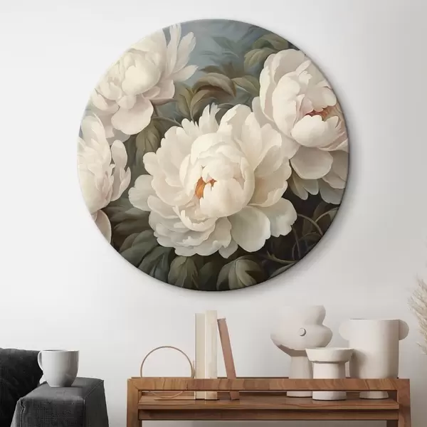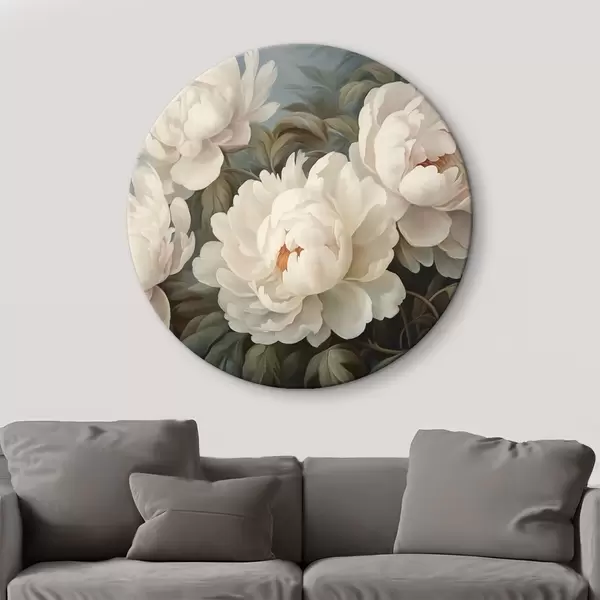 Cuadros redondos Flores y hojas blancas en la niebla r43091