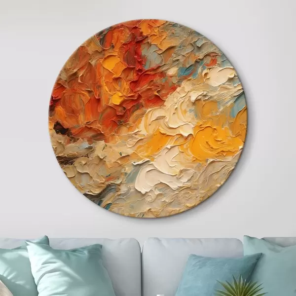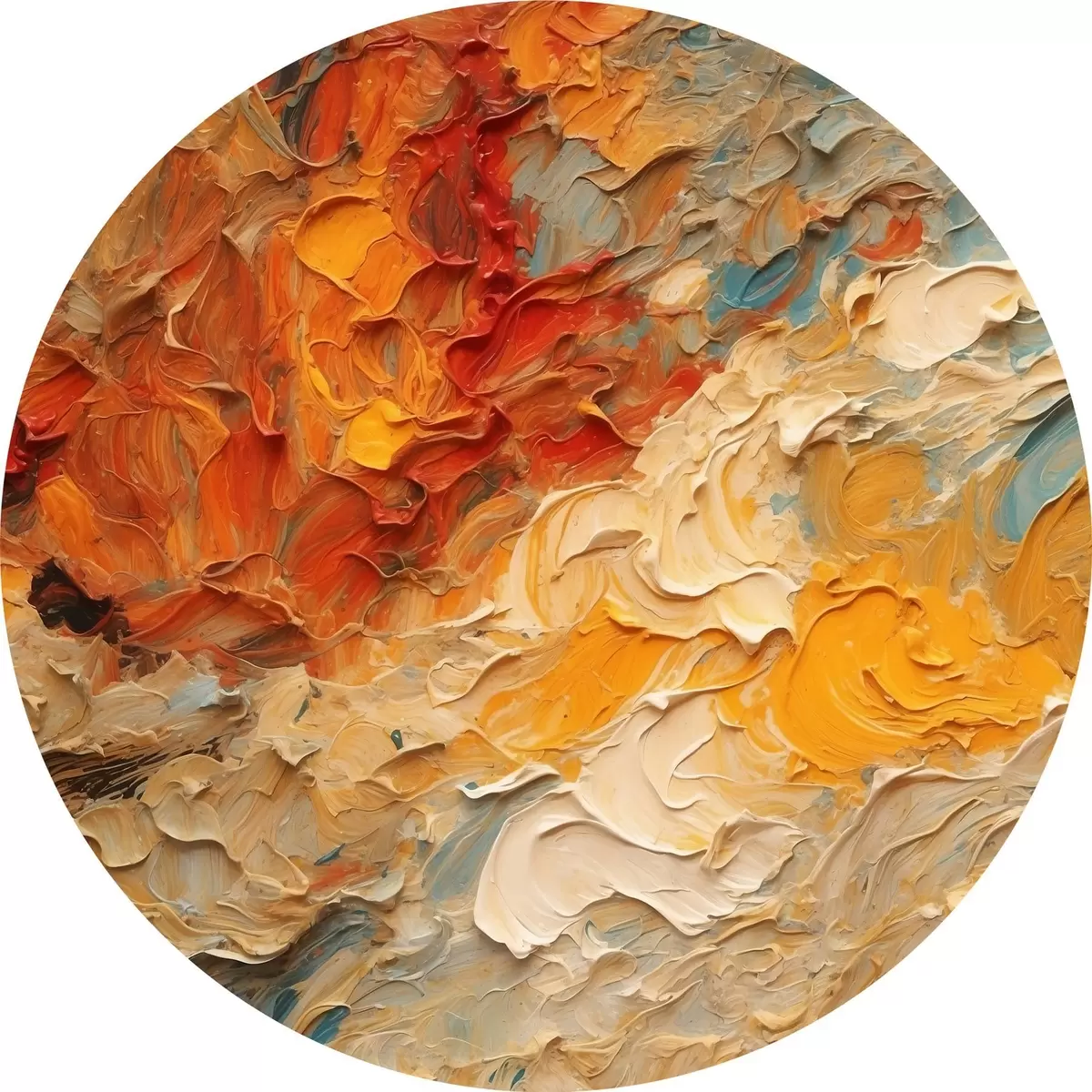 Cuadros redondos Óleo rojo y blanco de estilo abstracto r43092
