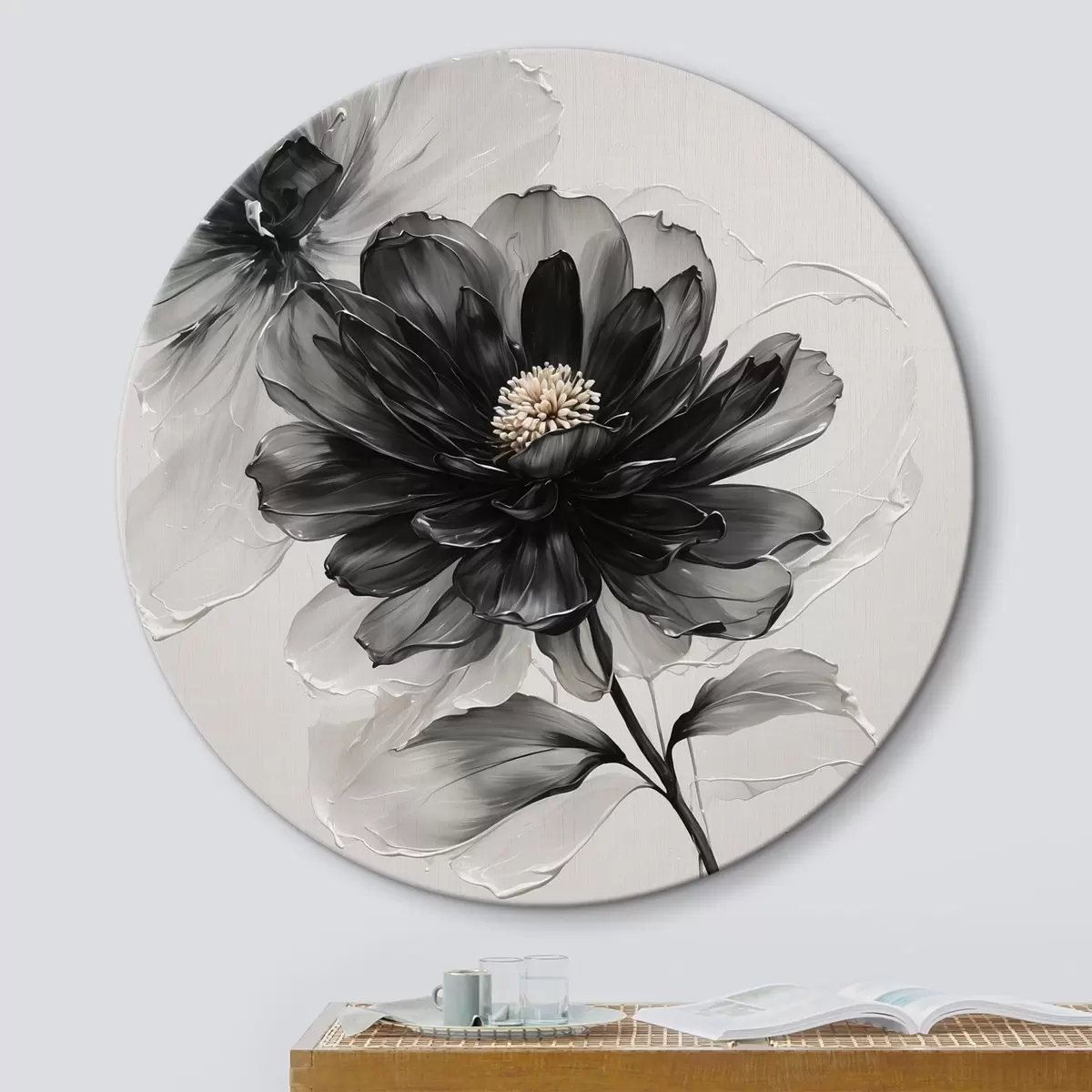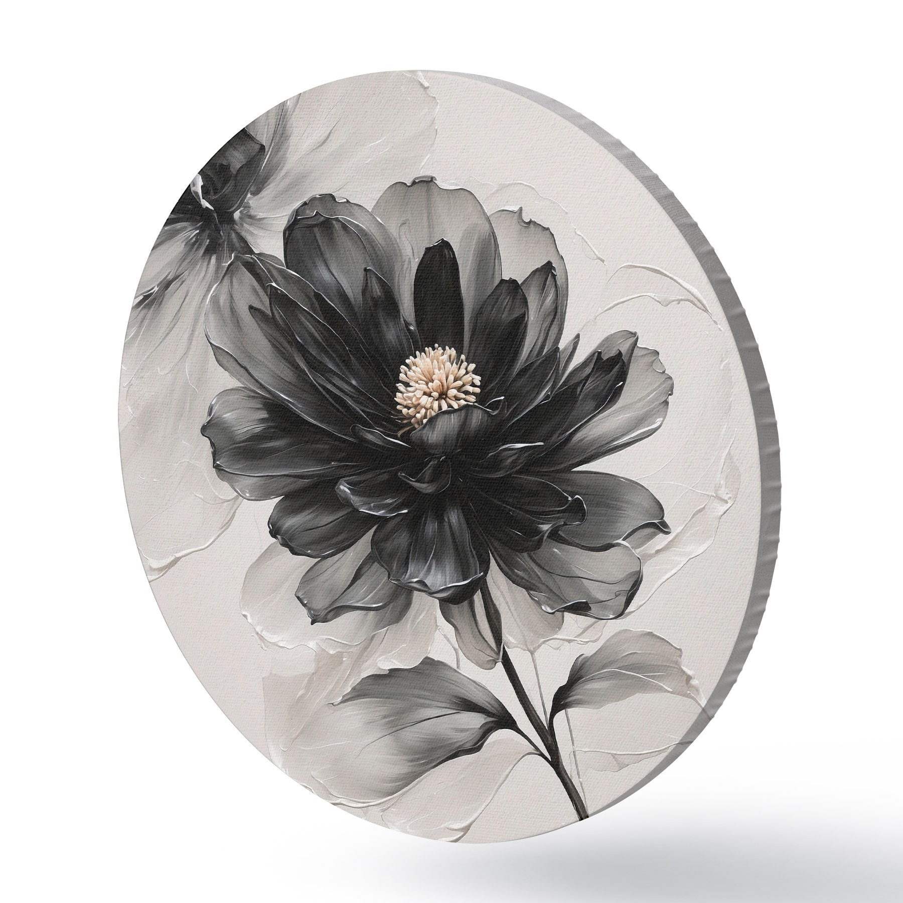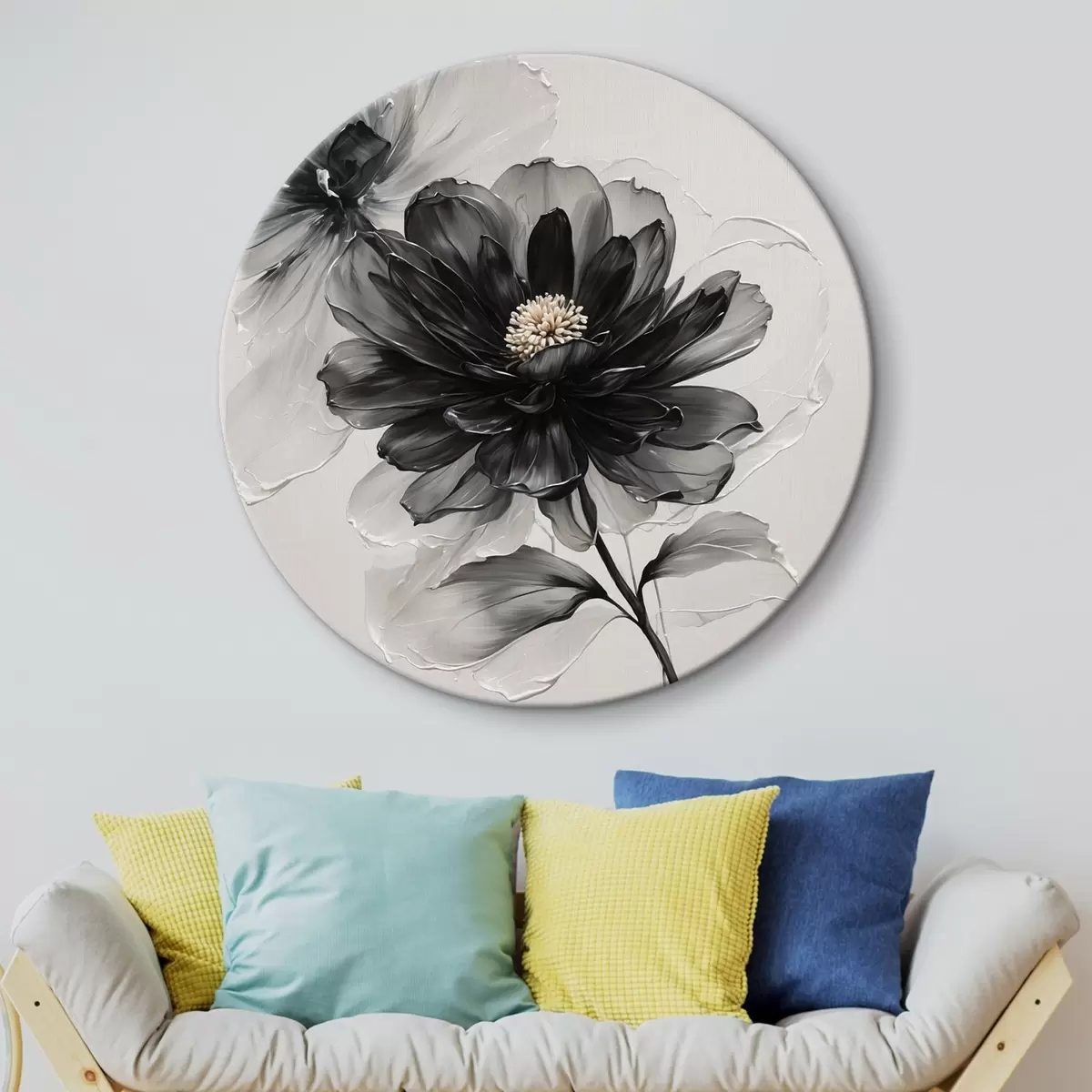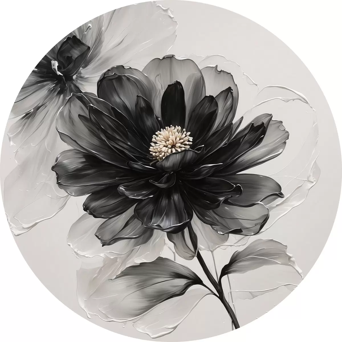 Cuadros redondos Flor negra transparente sobre fondo blanco r43099