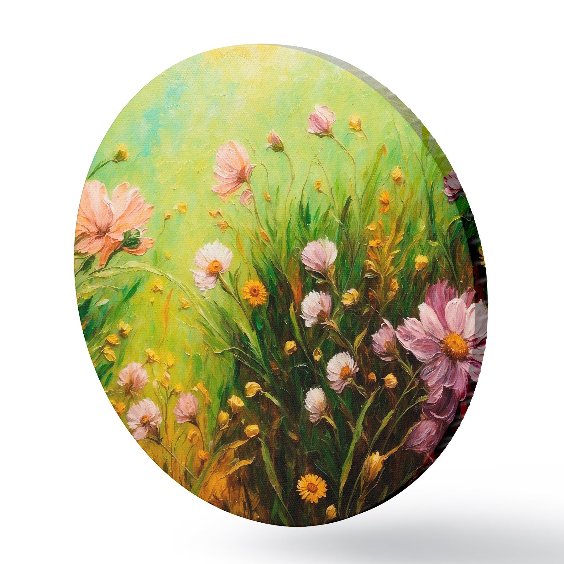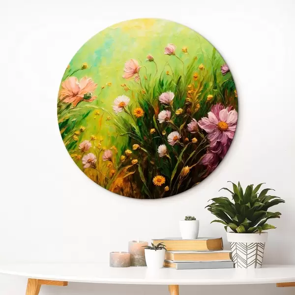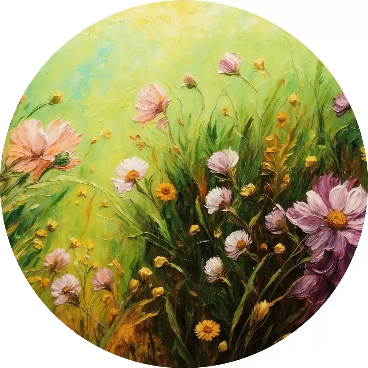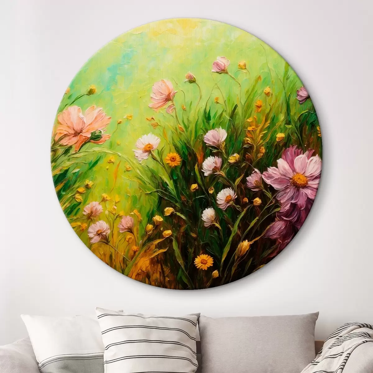 Cuadros redondos Campo de flores sobre fondo verde abstracto r43101