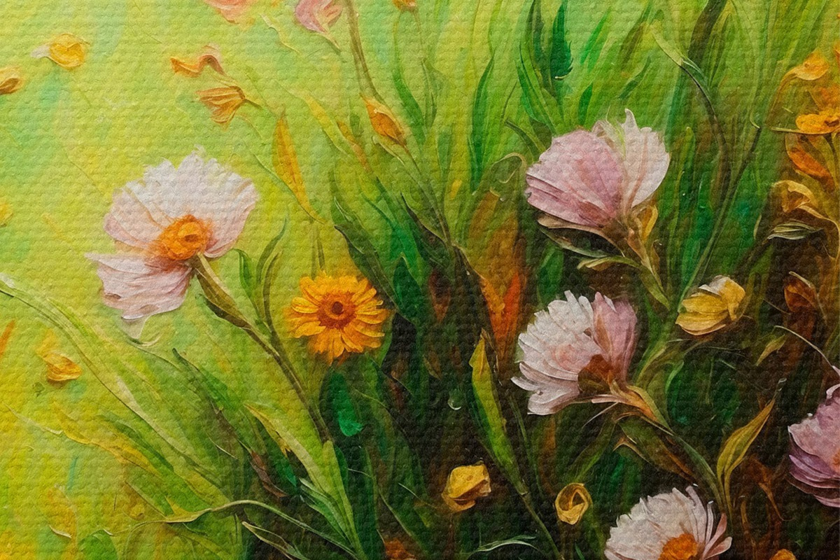 Foto Campo de flores sobre fondo verde abstracto Nr r43101