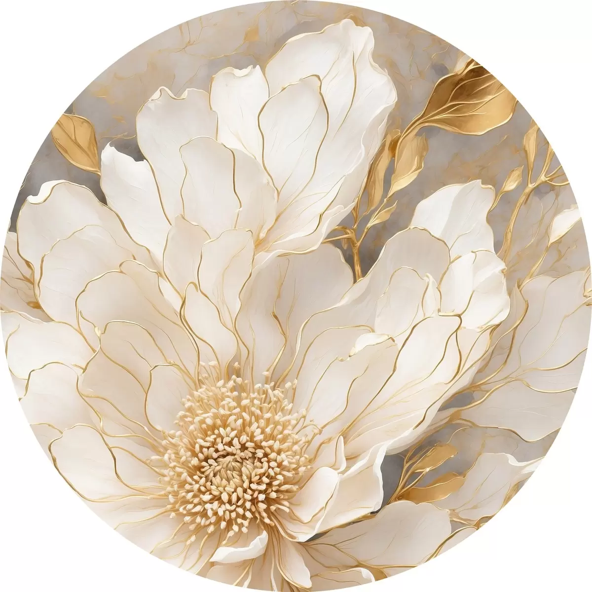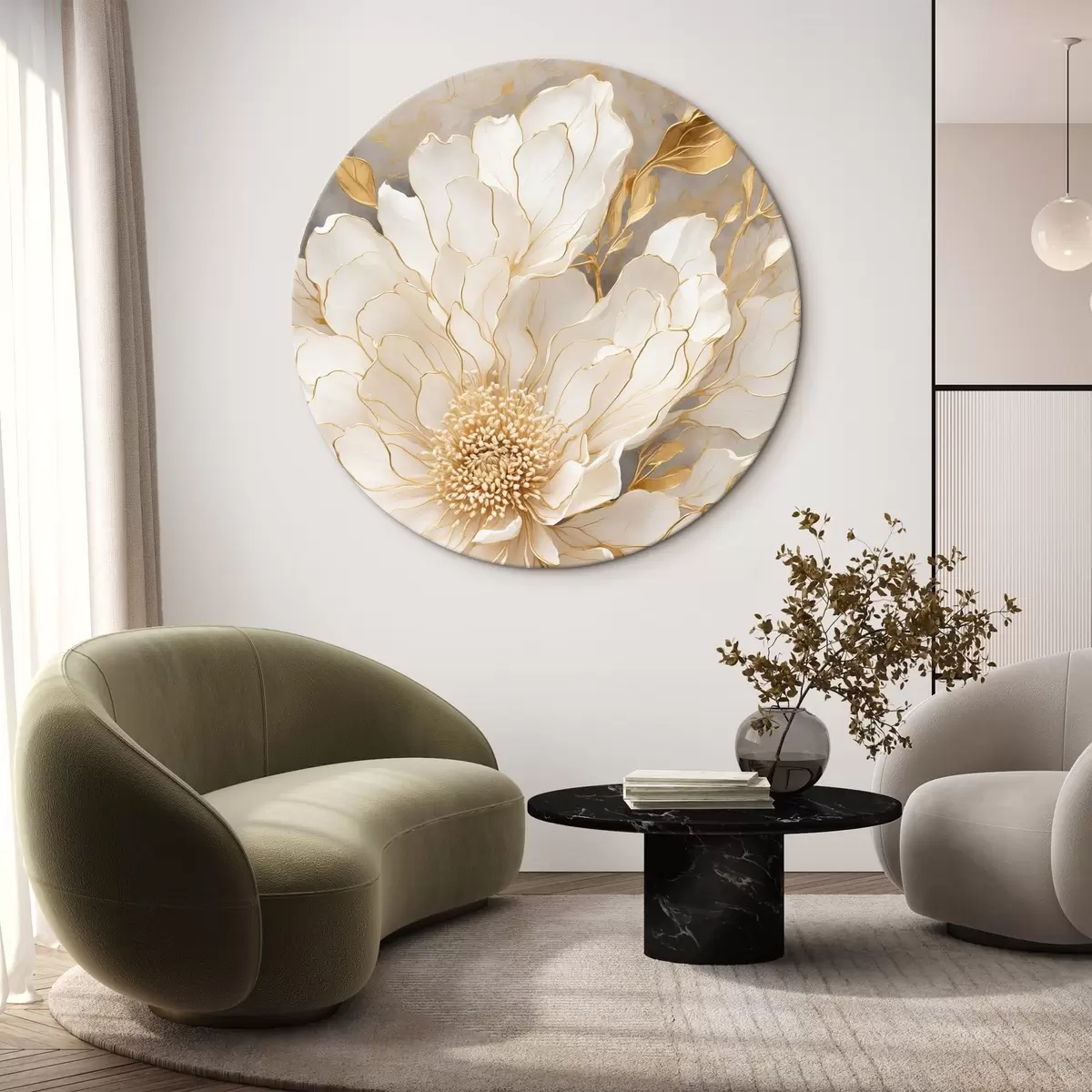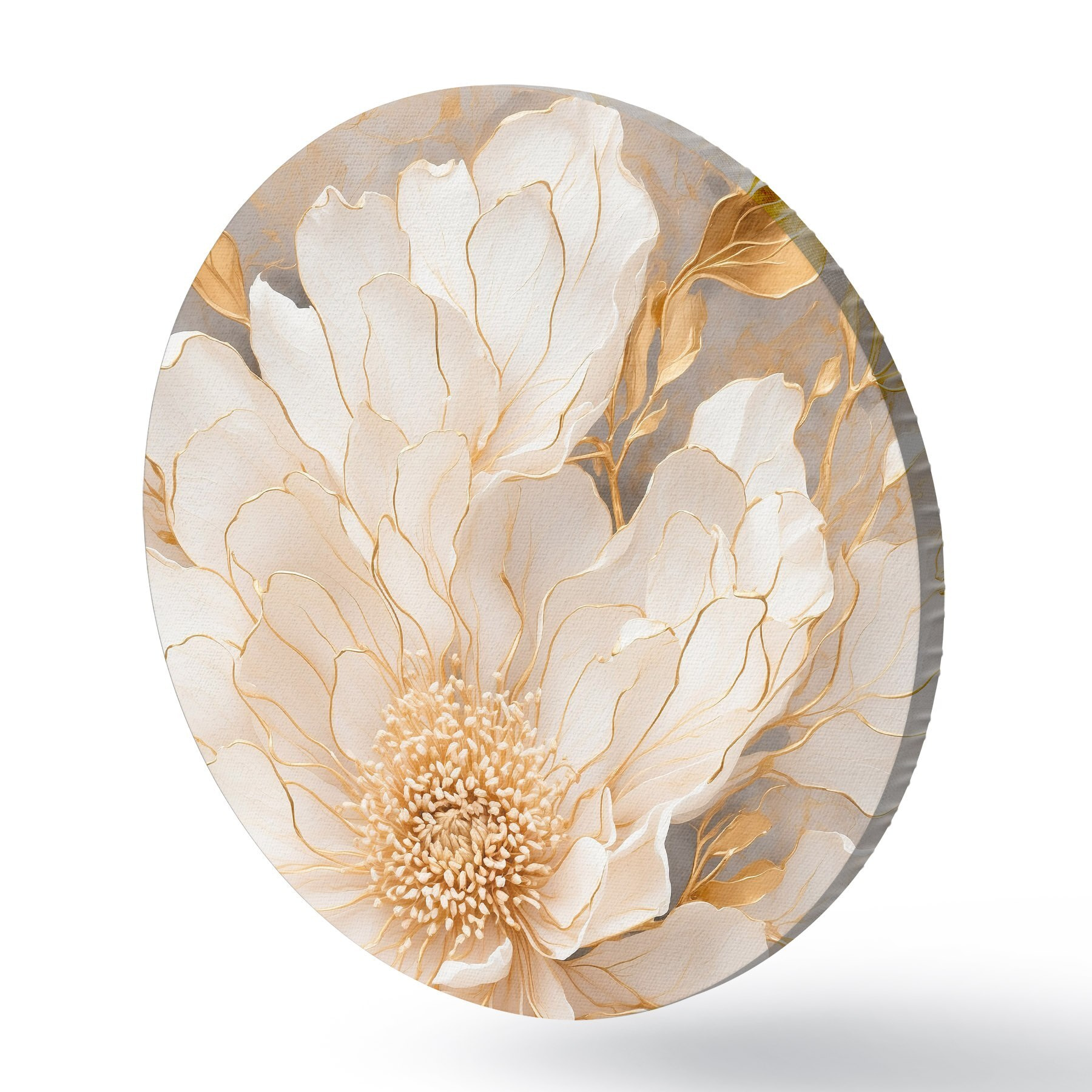 Cuadros redondos Flor blanca con hojas en estilo de pintura acrílica r43115