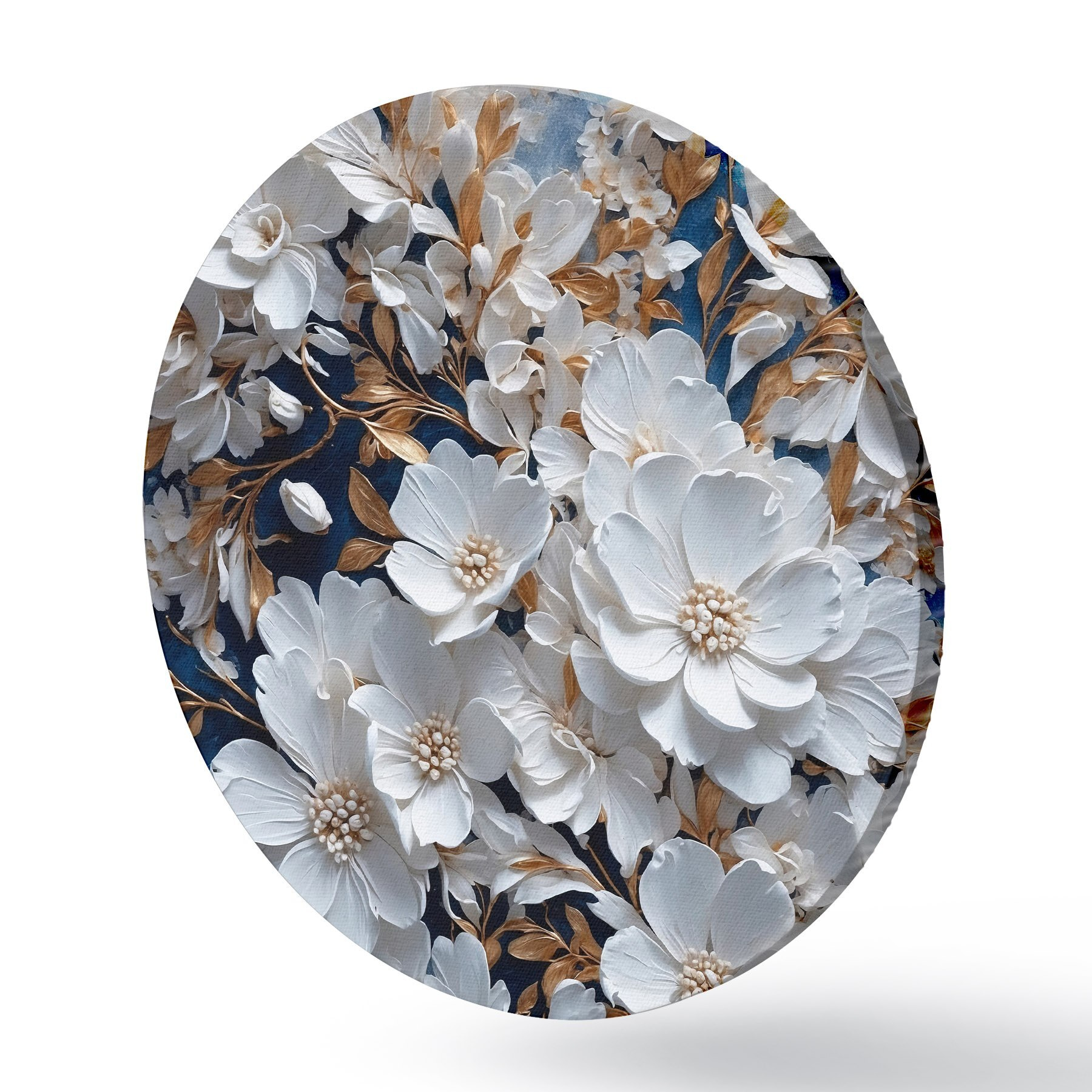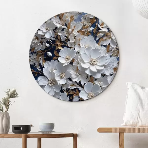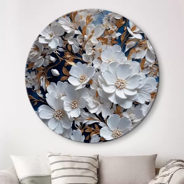 Cuadros redondos Flores blancas sobre fondo azul r43116