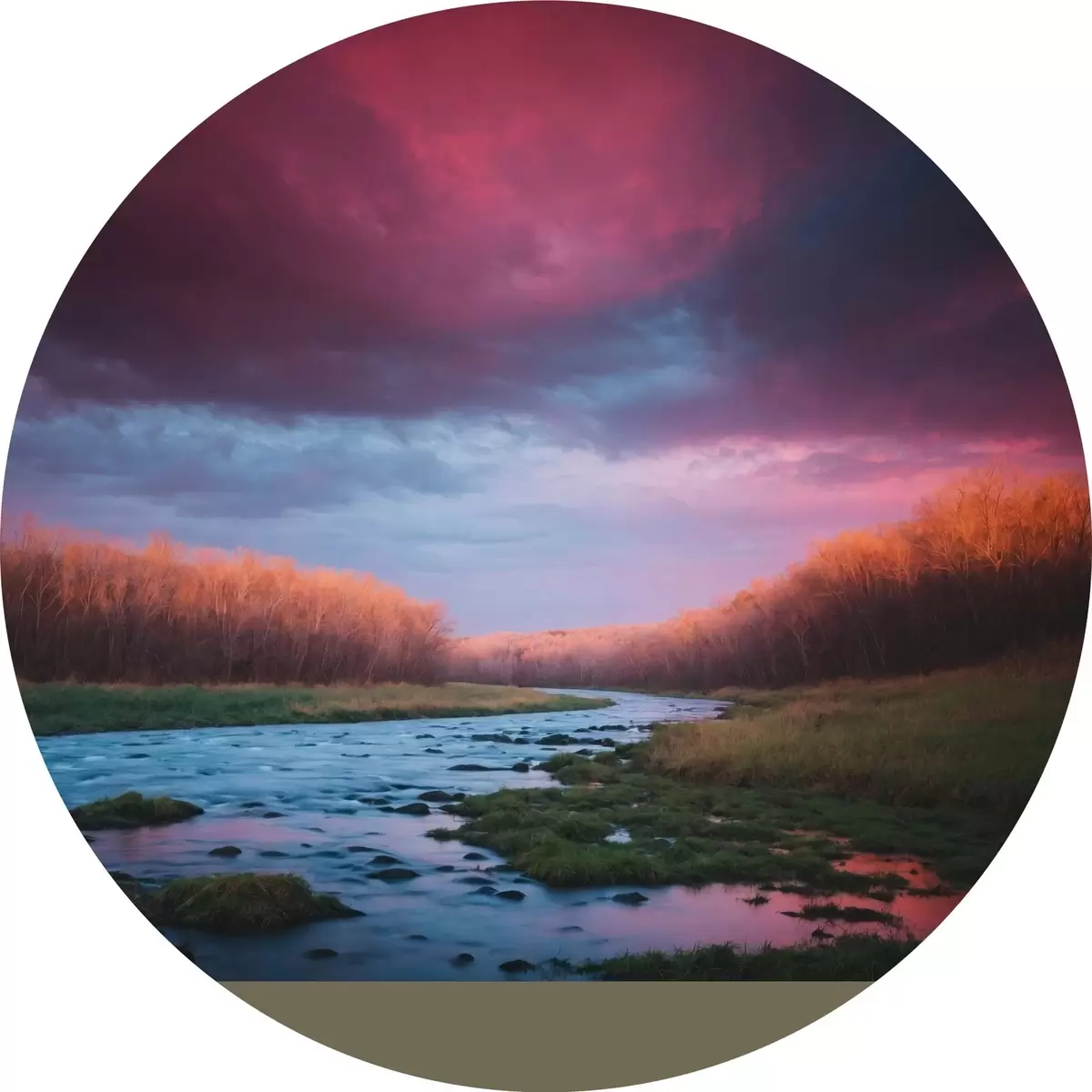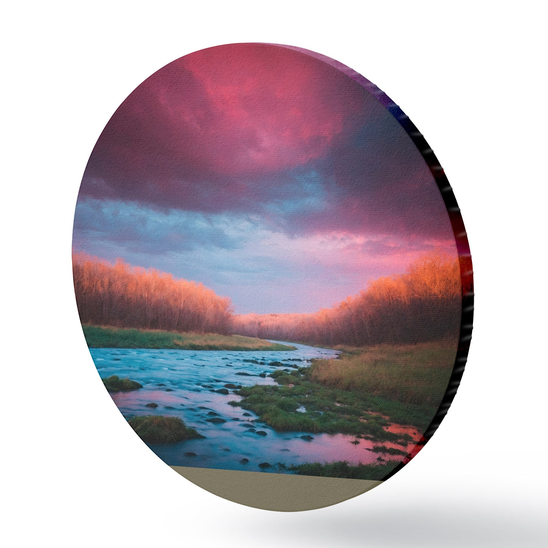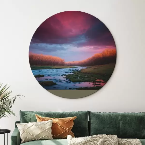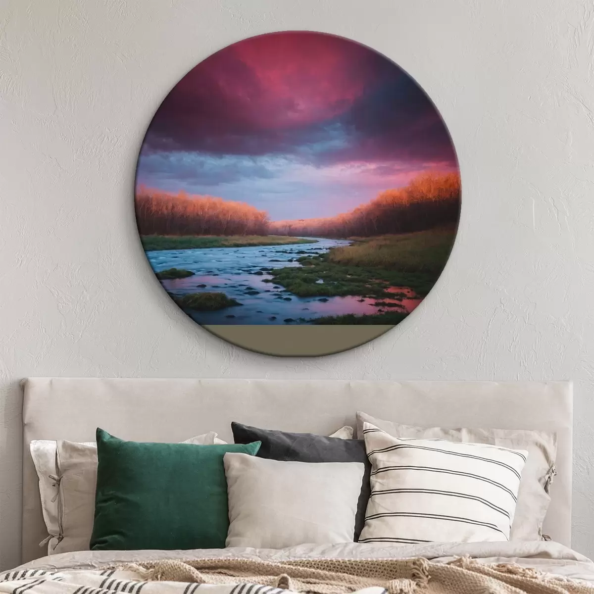 Cuadros redondos Arroyo en el campo sobre fondo de cielo púrpura r43120