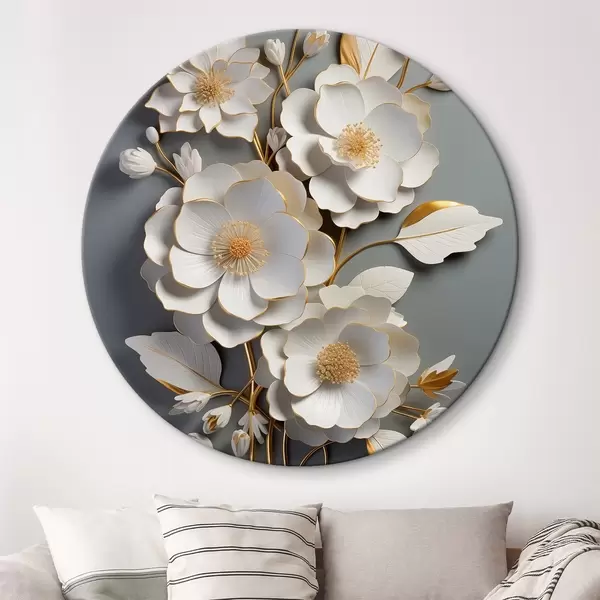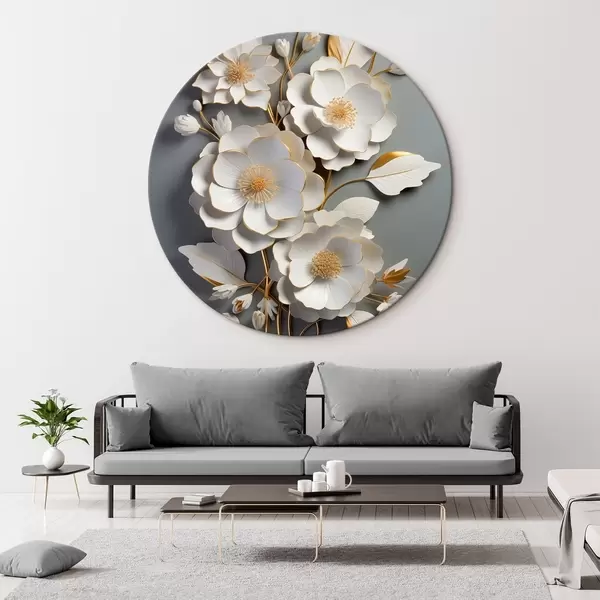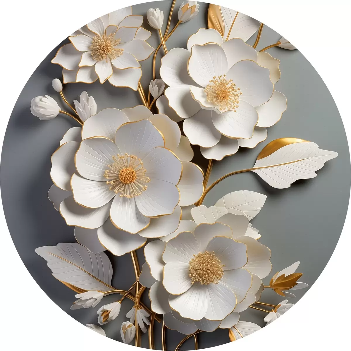 Cuadros redondos Flores volumétricas sobre fondo gris r43128