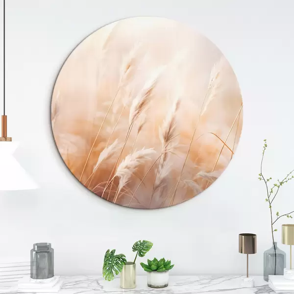 Cuadros redondos Hierba de la Pampa con una luz suave y difusa, creando un ambiente cálido, el fondo es una mezcla de colores pastel r43157