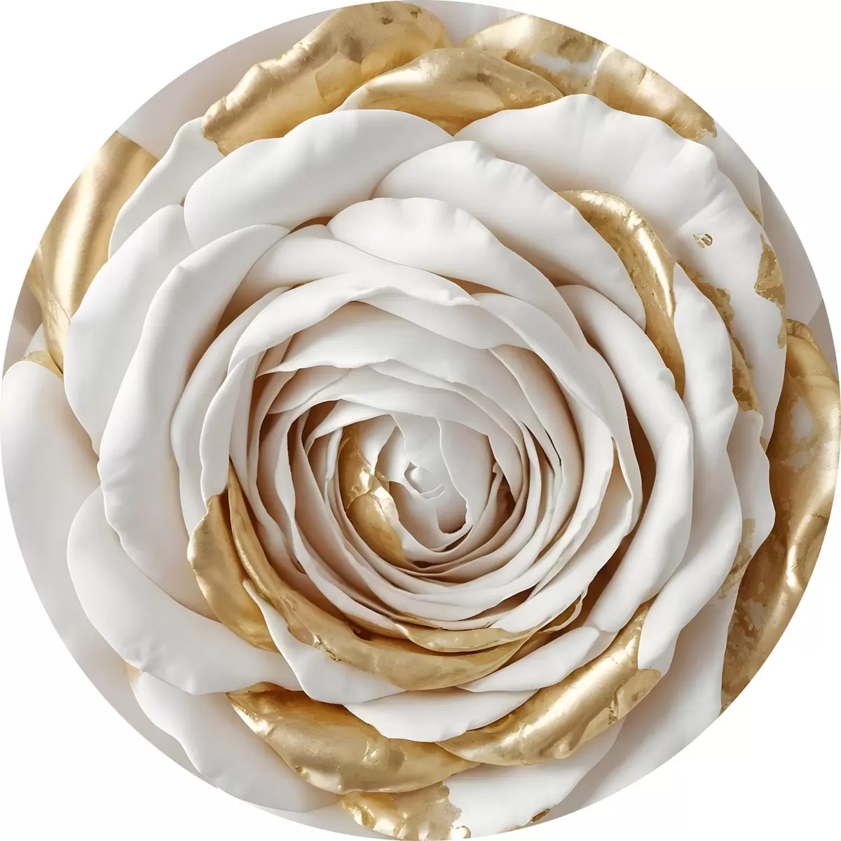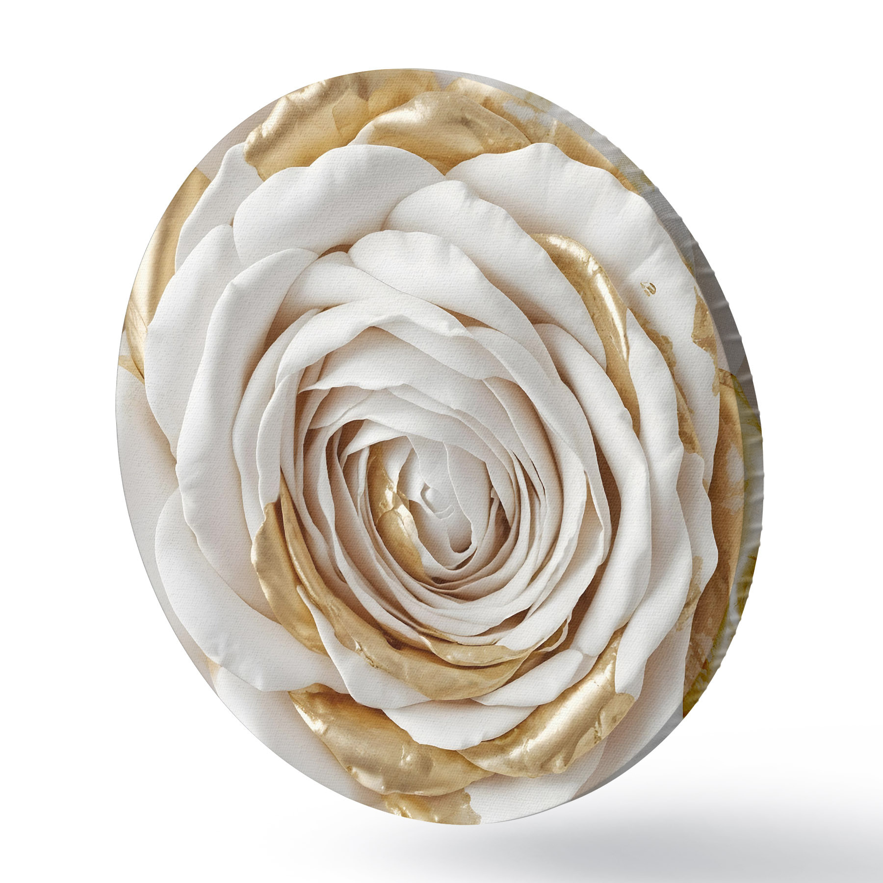 Cuadros redondos Una rosa decorativa minimalista blanca con detalles amarillos, los pétalos están en capas y rizados r43160