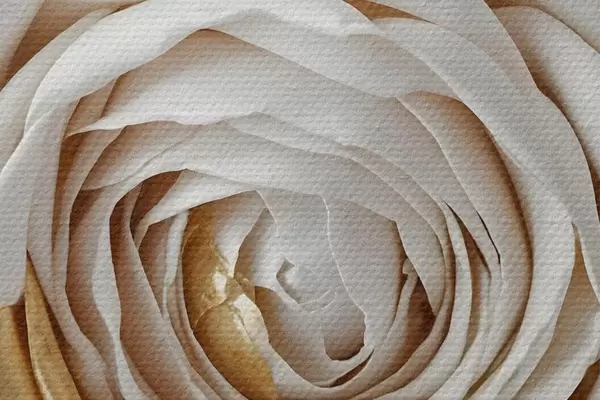 Foto Una rosa decorativa minimalista blanca con detalles amarillos, los pétalos están en capas y rizados Nr r43160