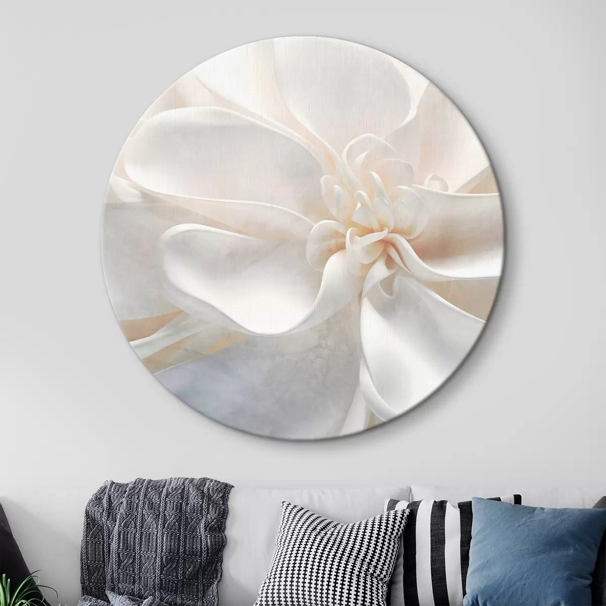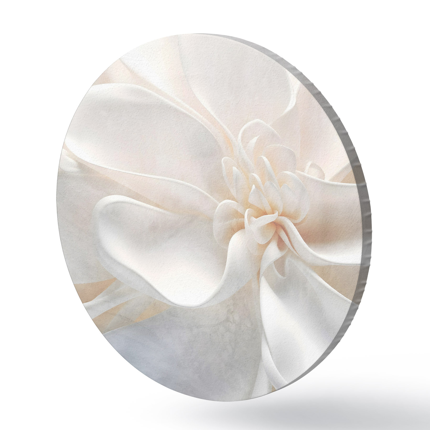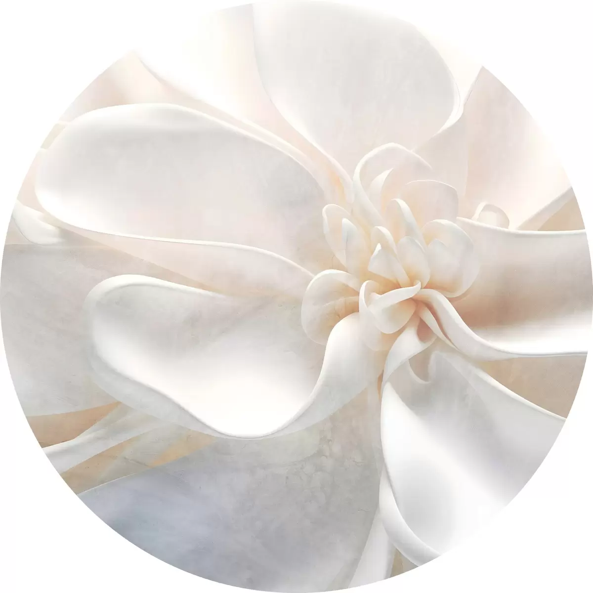 Cuadros redondos Primer plano de una flor abstracta blanca de textura ruidosa con delicados pétalos en colores pastel r43161