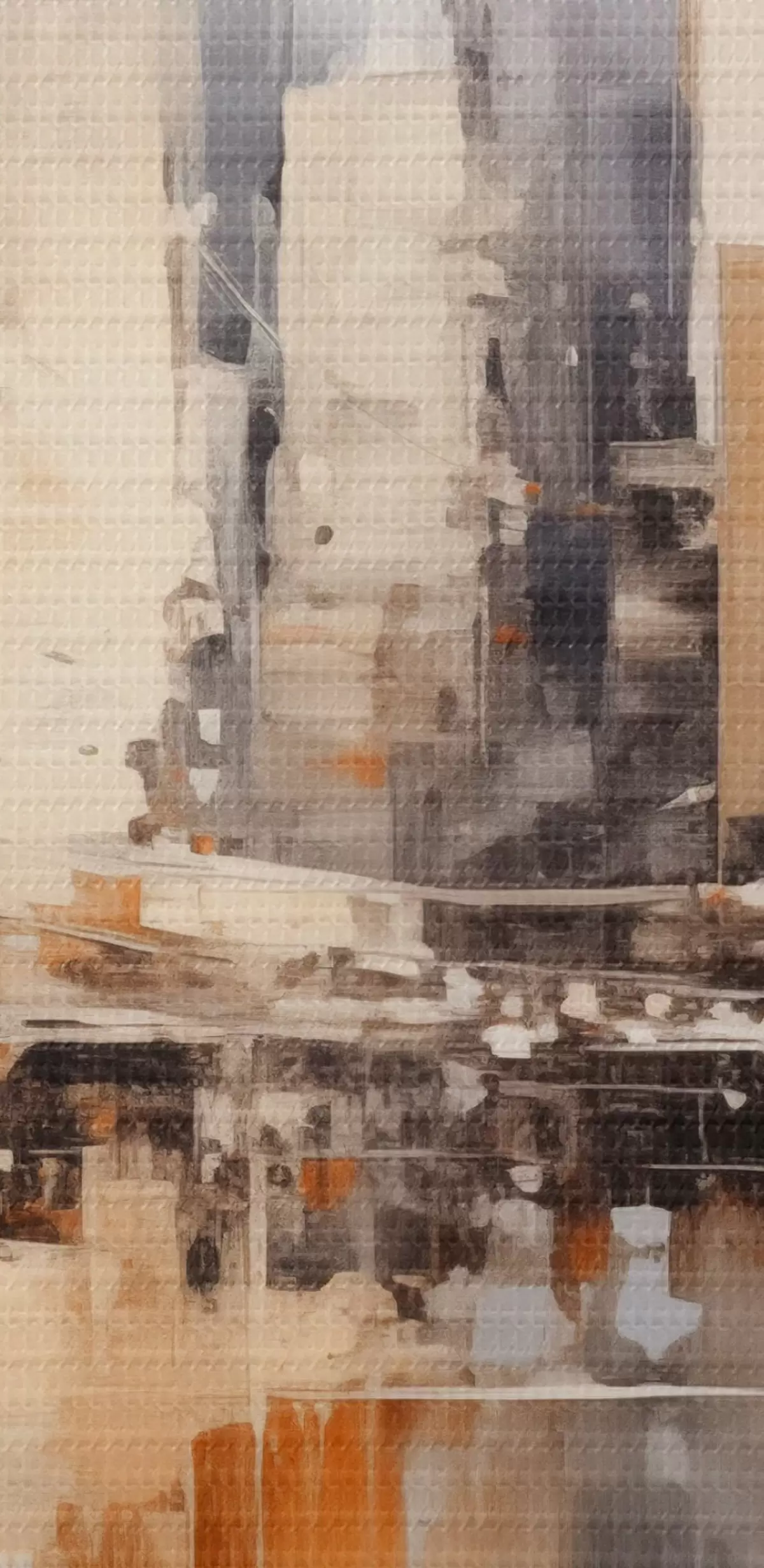 Foto Paisaje urbano abstracto con edificios altos en tonos marrones, grises y blancos, reflejados en el agua Nr r43168