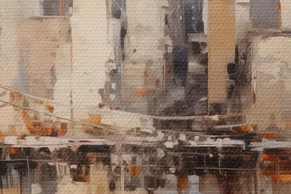 Foto Paisaje urbano abstracto con edificios altos en tonos marrones, grises y blancos, reflejados en el agua Nr r43168
