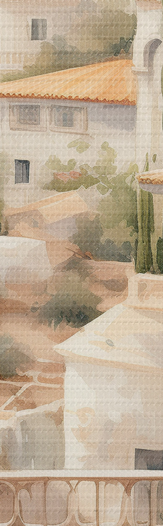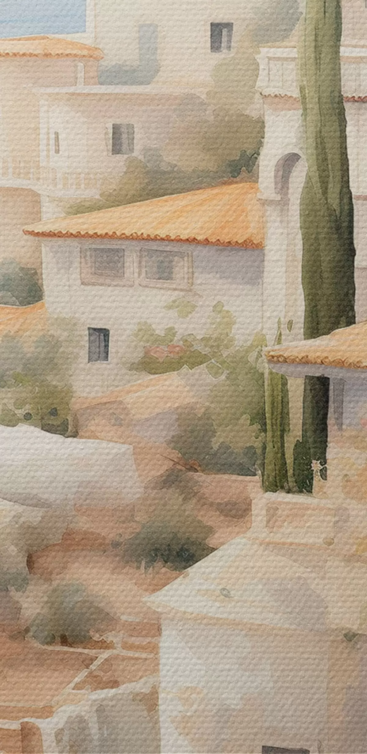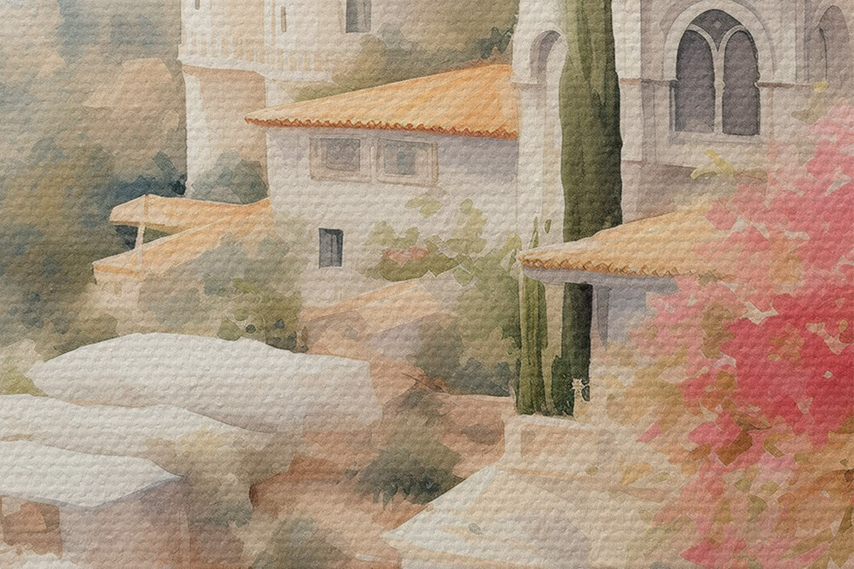 Foto Paisaje de verano en España, arquitectura mediterránea, estilo acuarela Nr r43181