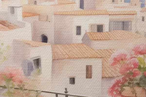 Foto Puesta de sol en el balcón, Italia, arquitectura, flores en flor, estilo acuarela Nr r43184