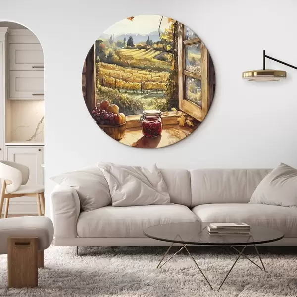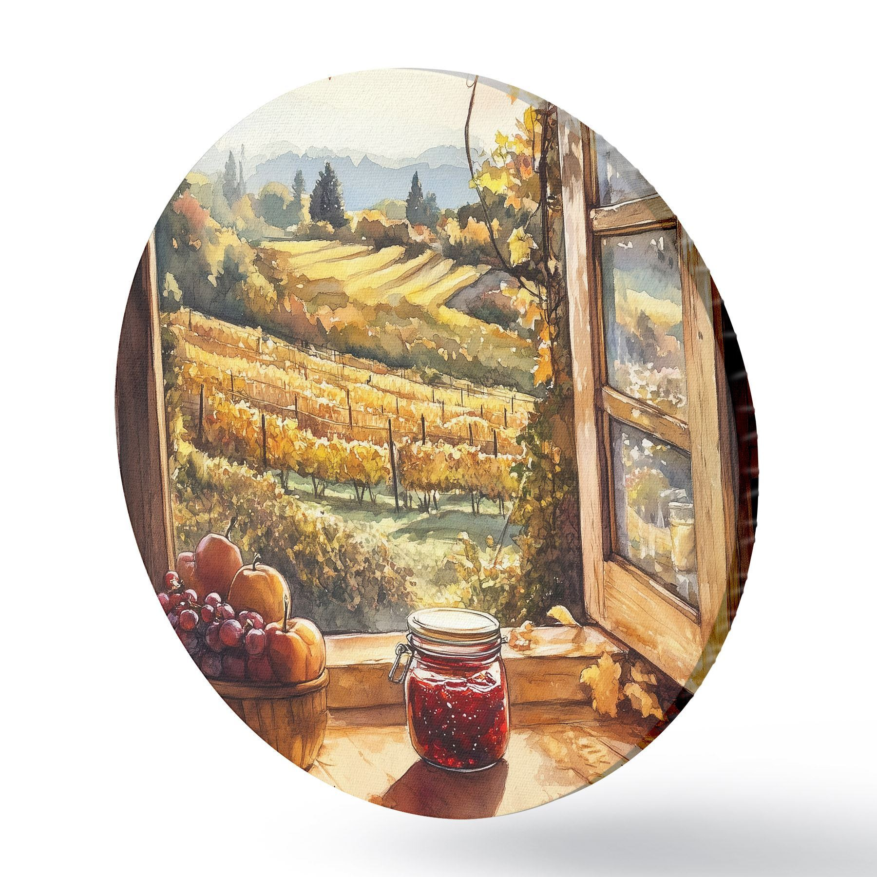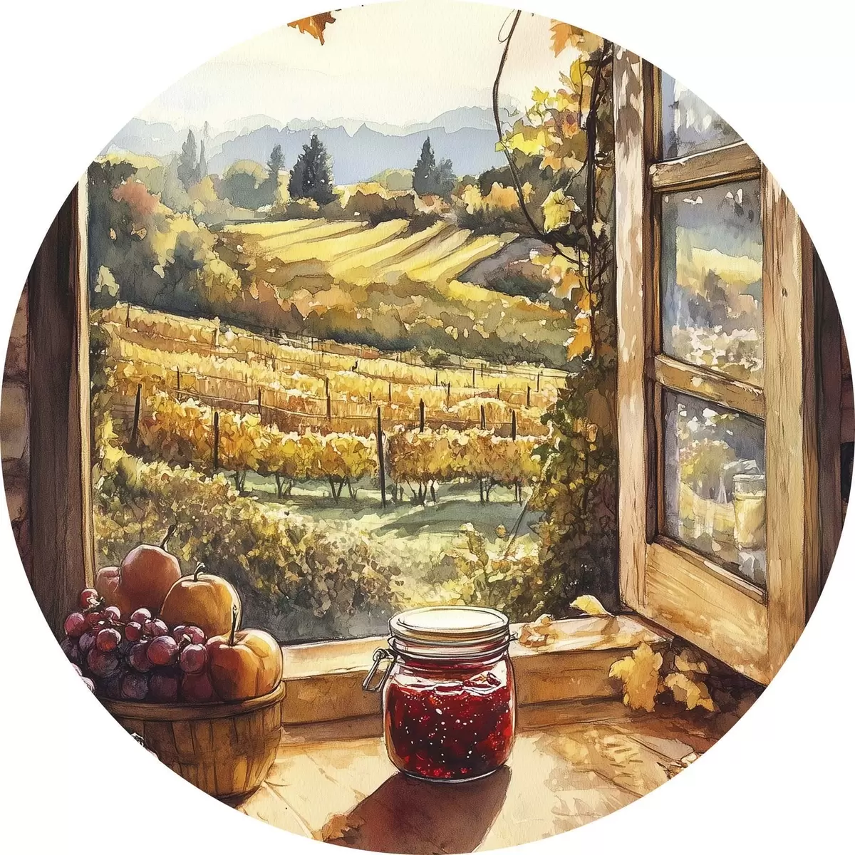 Cuadros redondos Cosecha en el pueblo, rústico, frutas, mermelada, paisajes de naturaleza, estilo acuarela r43186